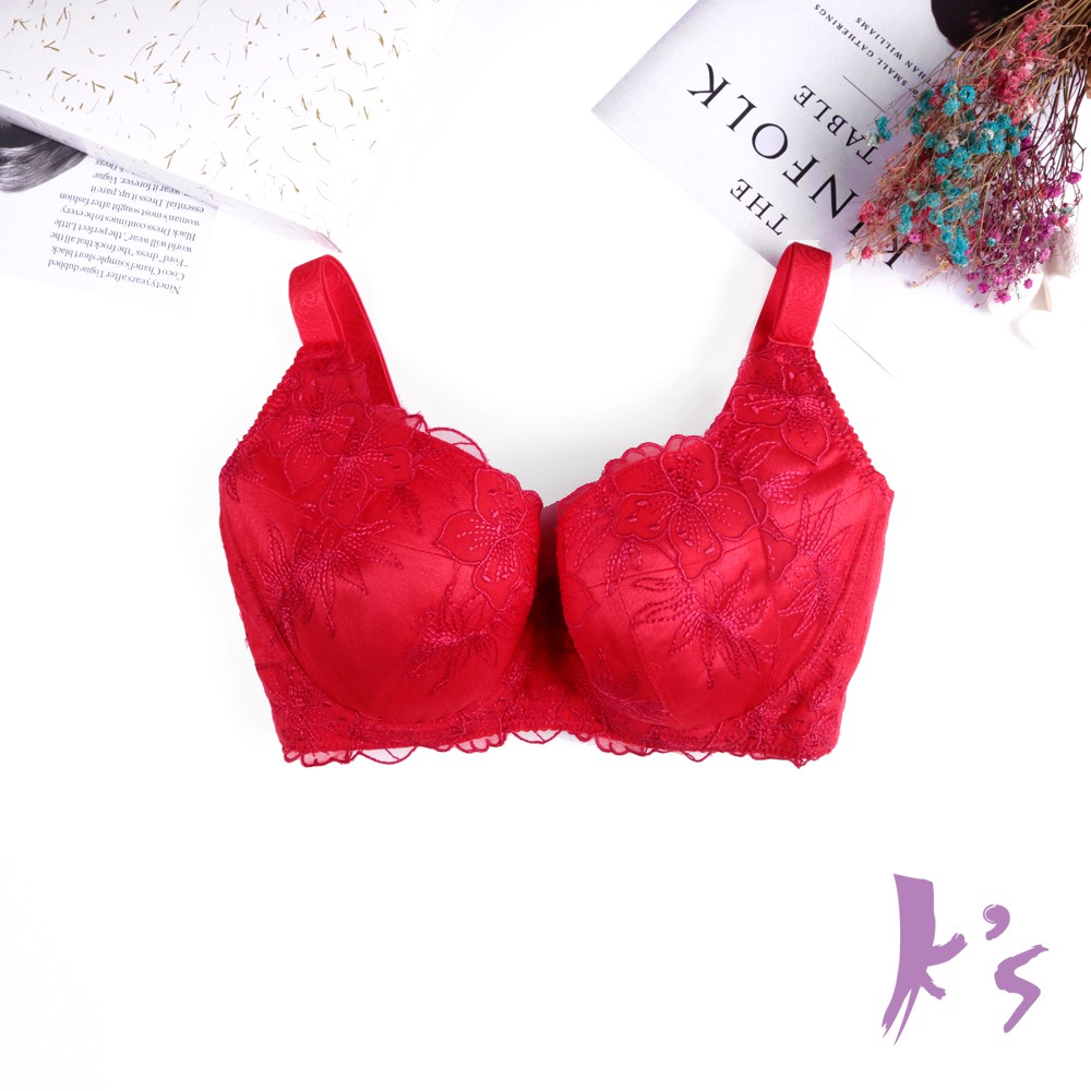 【K's凱恩絲】幸運花刺繡包覆機能有氧蠶絲內衣-B127款紅色