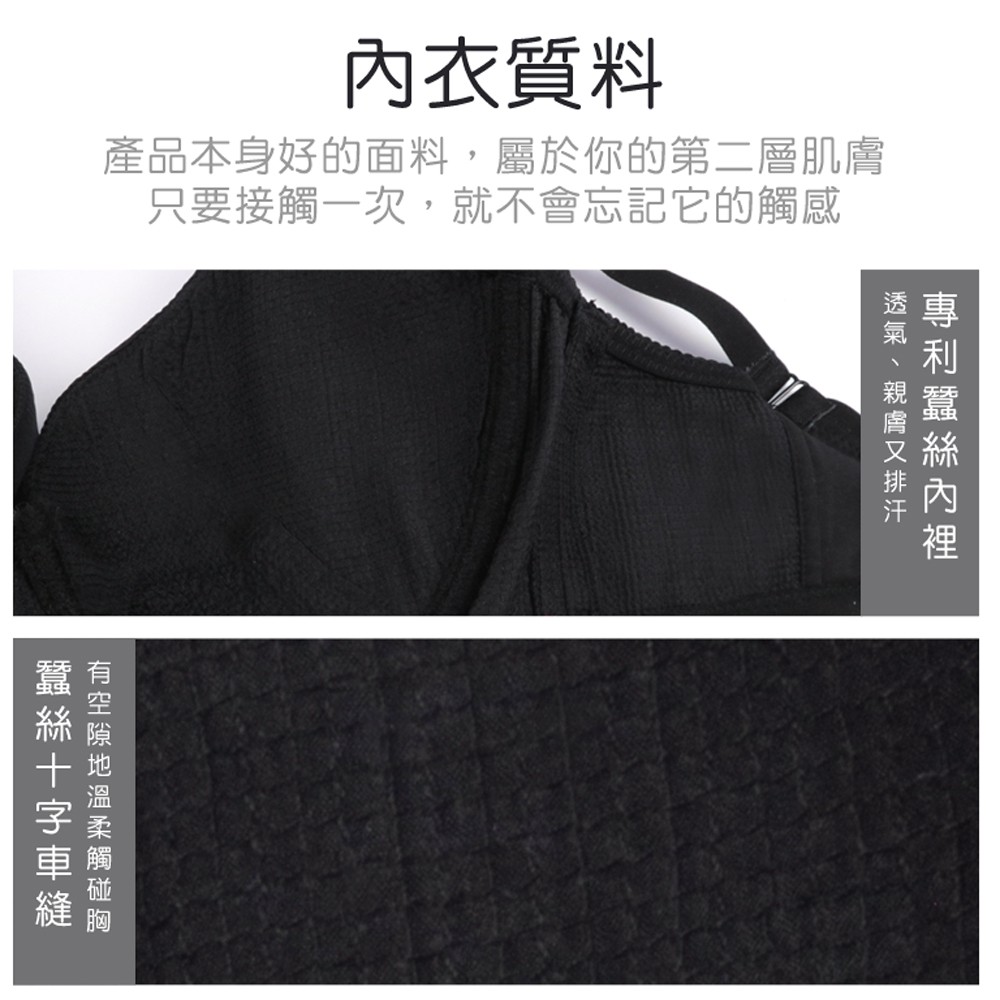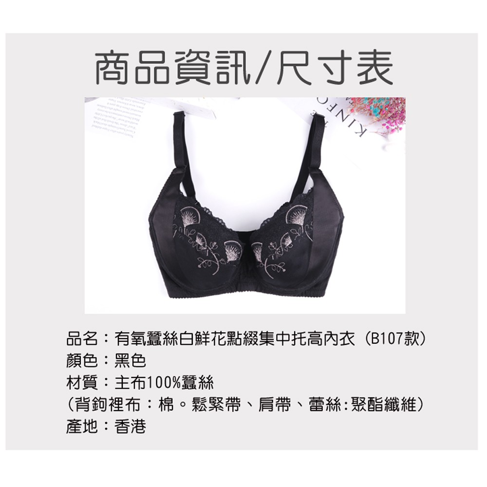 【K's凱恩絲】白鮮花點綴集中托高有氧蠶絲內衣-B107款黑色
