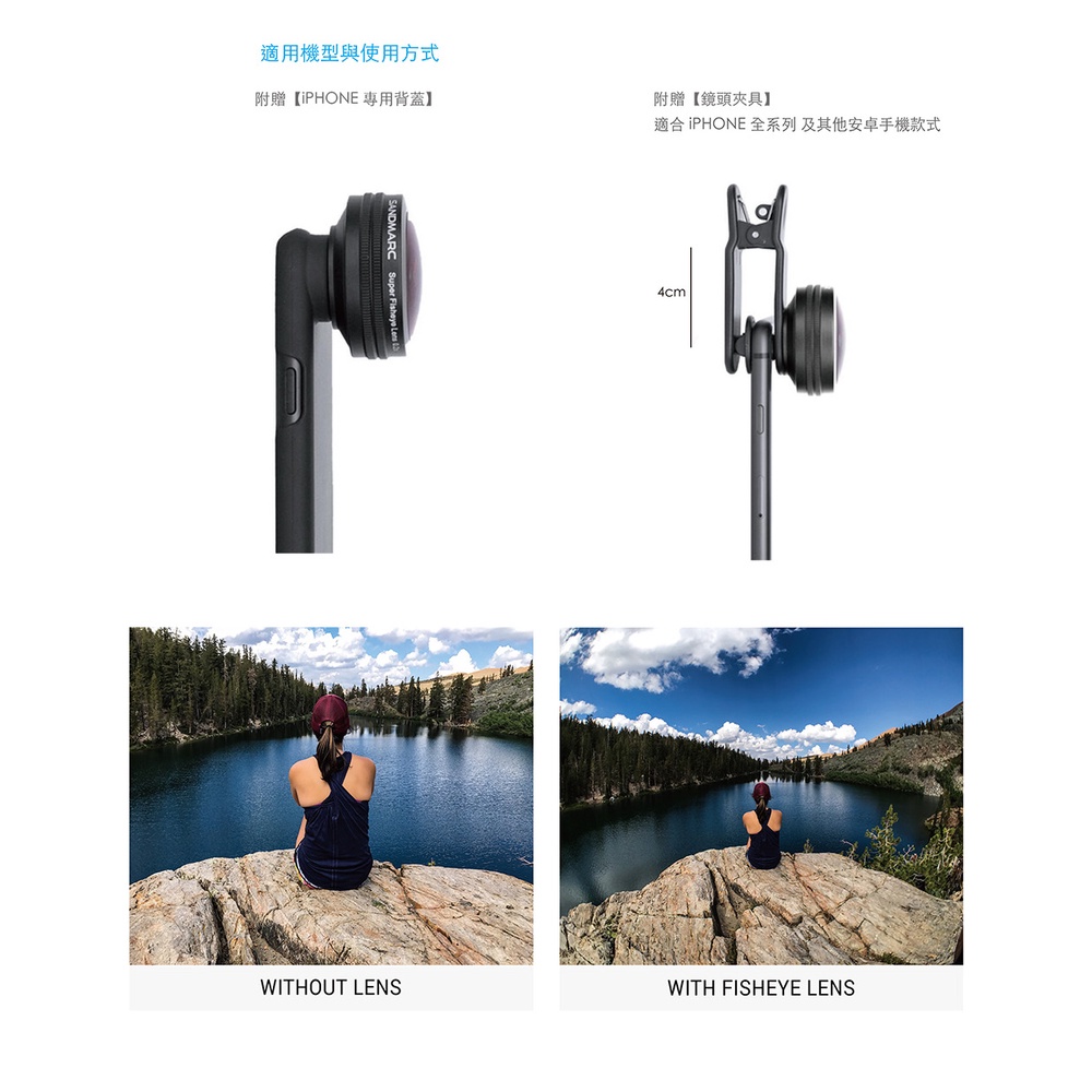 SANDMARC 0.2X 魚眼 HD 手機鏡頭 (內含安卓共用夾具與iPhone全系列背蓋)【台灣總代理】