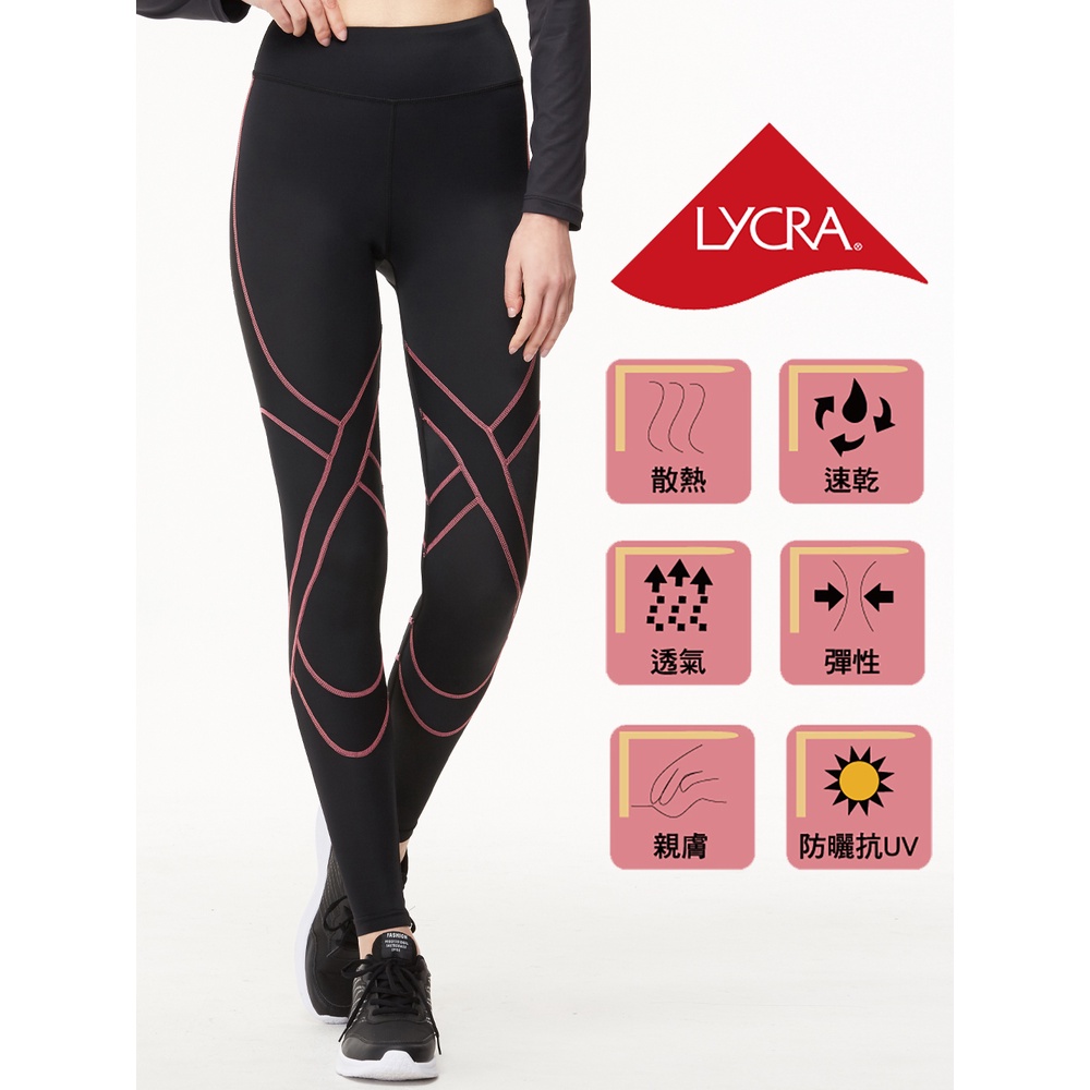 【Jack wolfskin 飛狼】女 高彈性防曬壓力褲 壓縮褲『黑底 / 桃紅線』