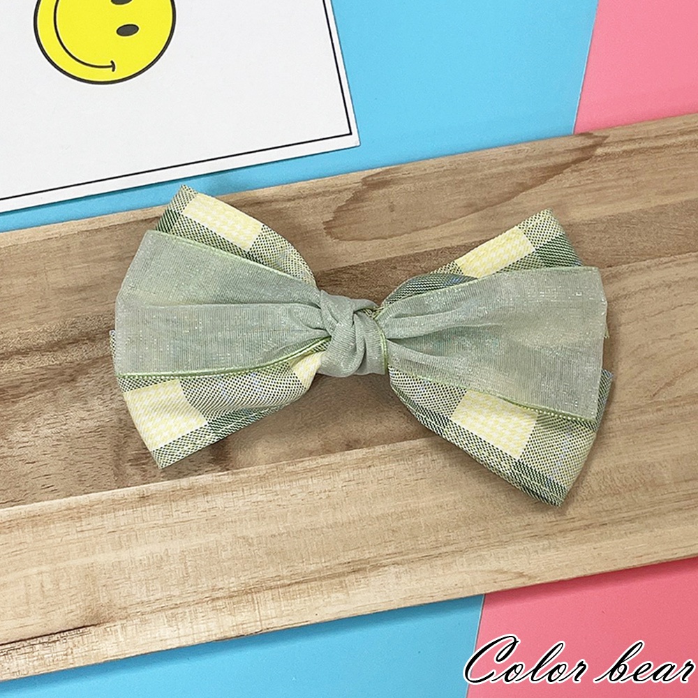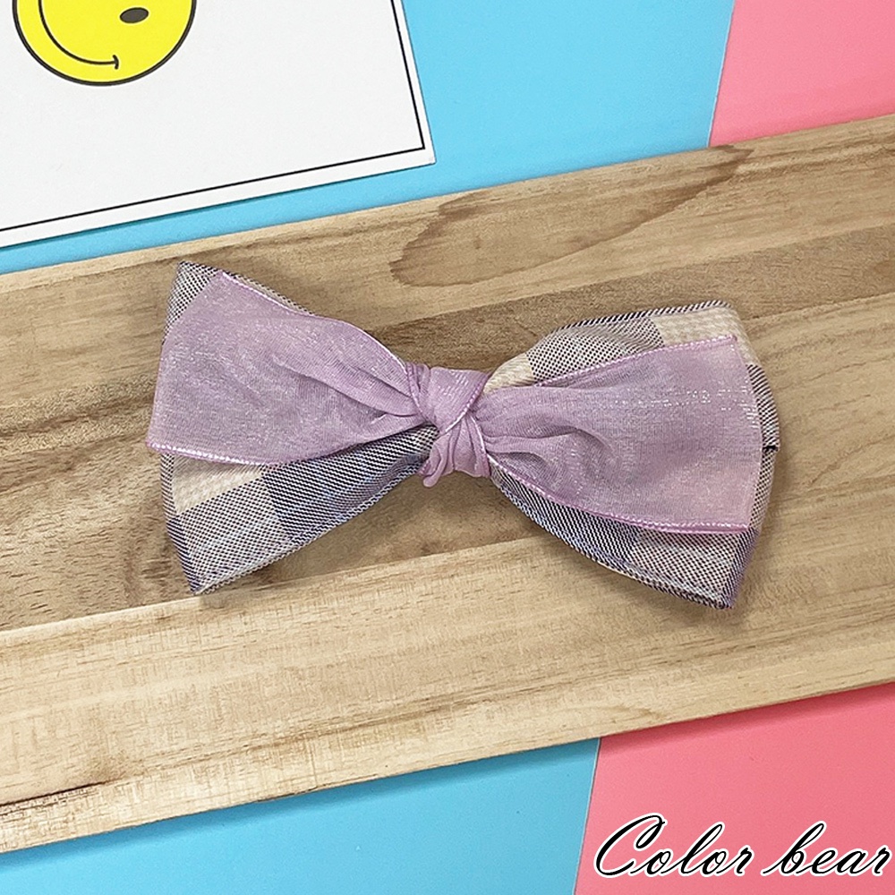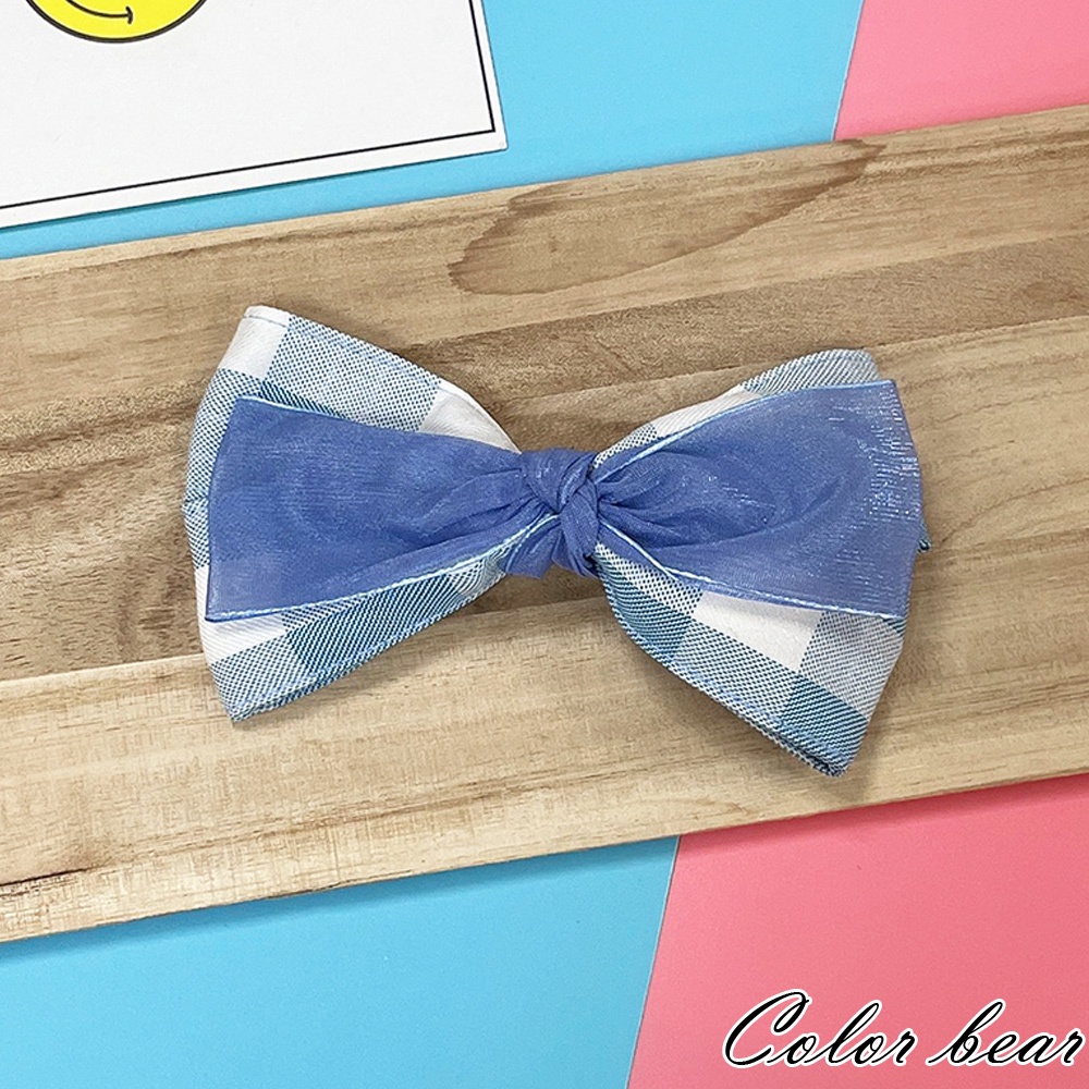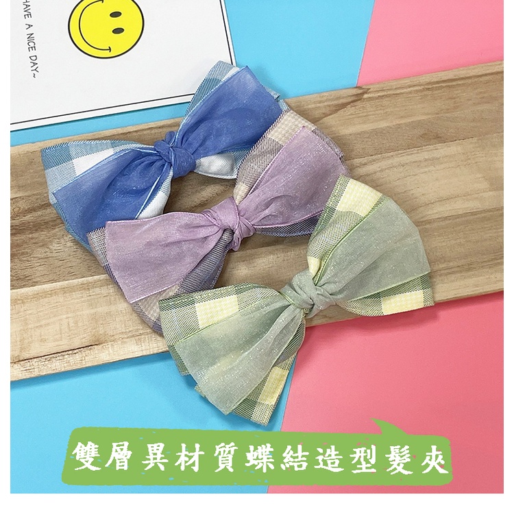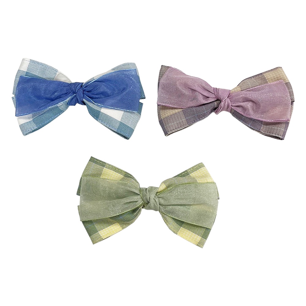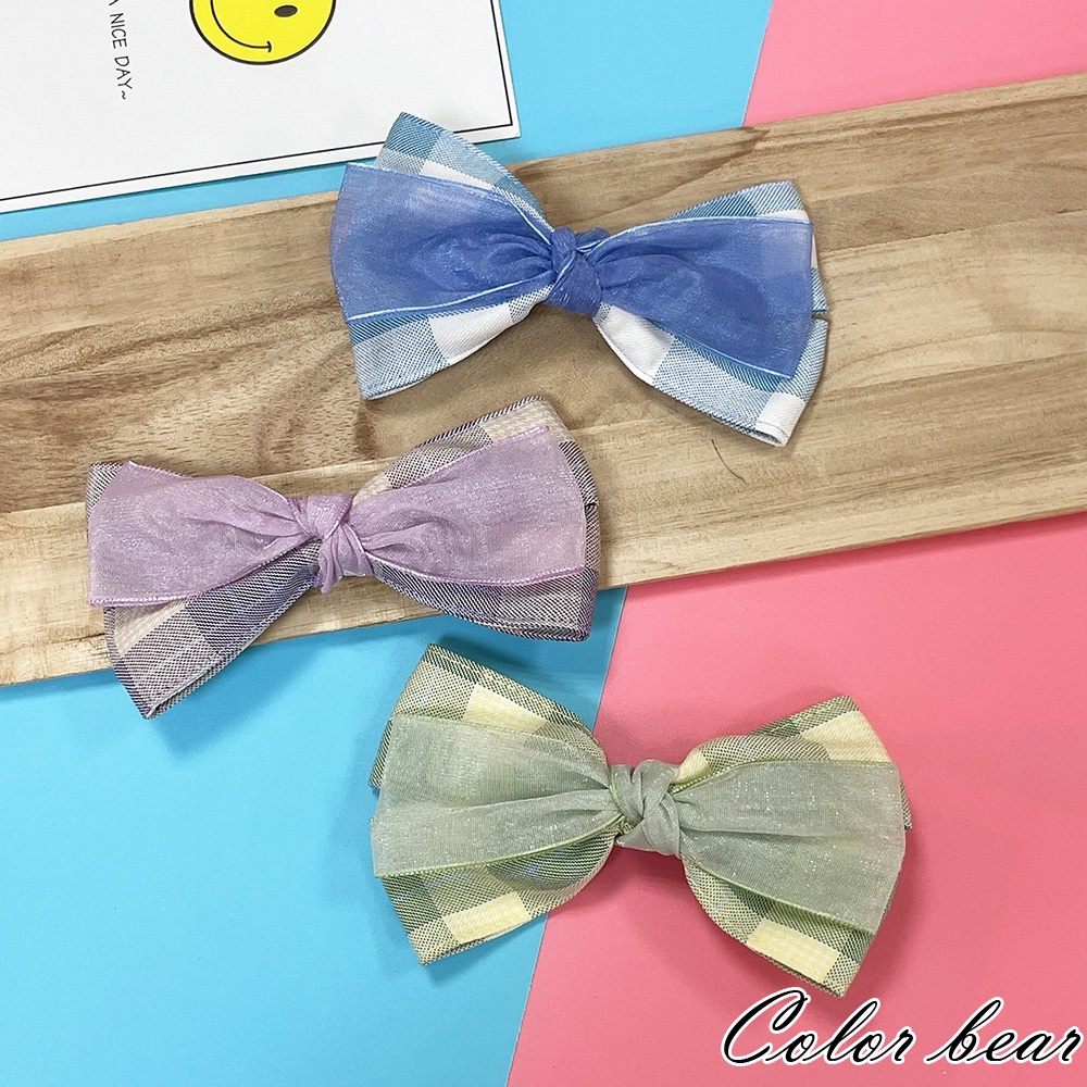 【卡樂熊】韓系氣質層次蝶結格紋網紗造型髮夾/邊夾(三色)