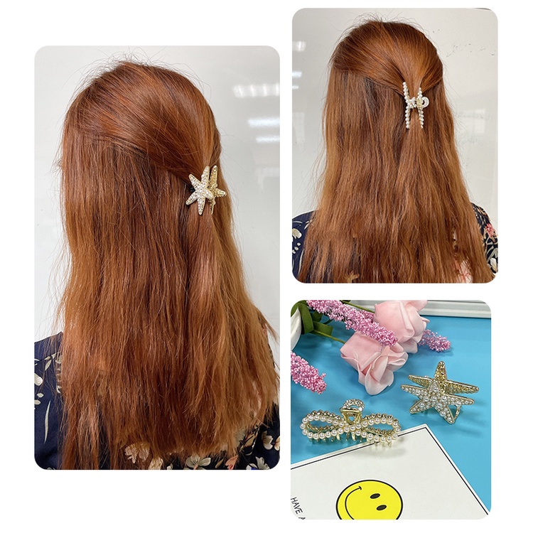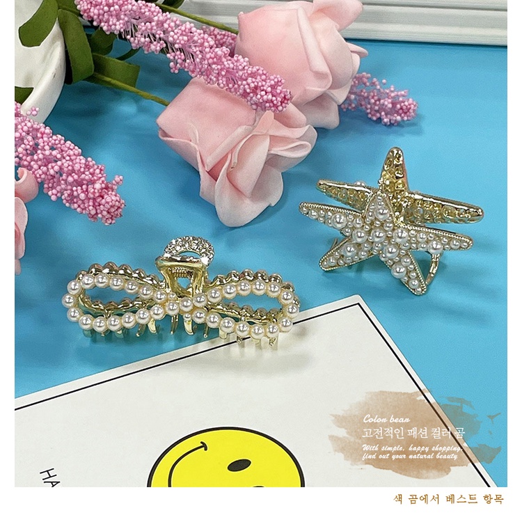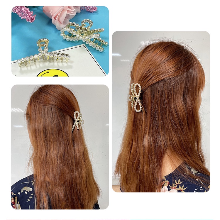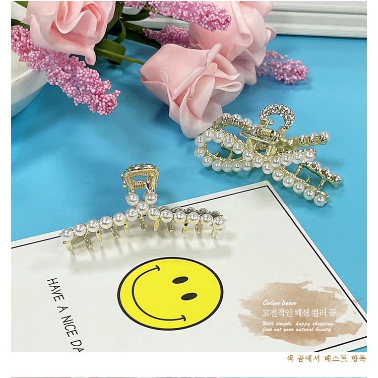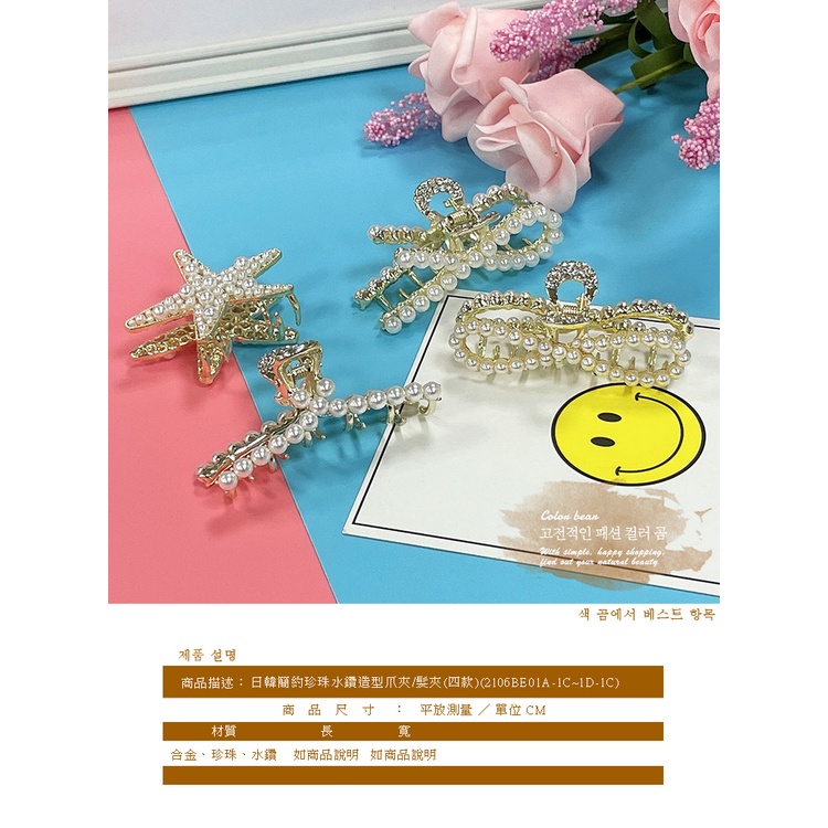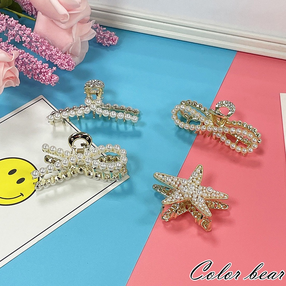 【卡樂熊】日韓簡約珍珠水鑽造型爪夾/髮夾(四款)