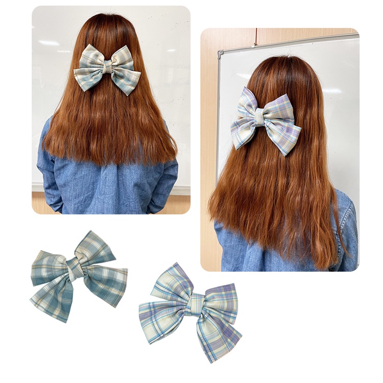 現貨【卡樂熊】氣質布藝格紋大蝶結造型髮夾/自動夾(兩色)