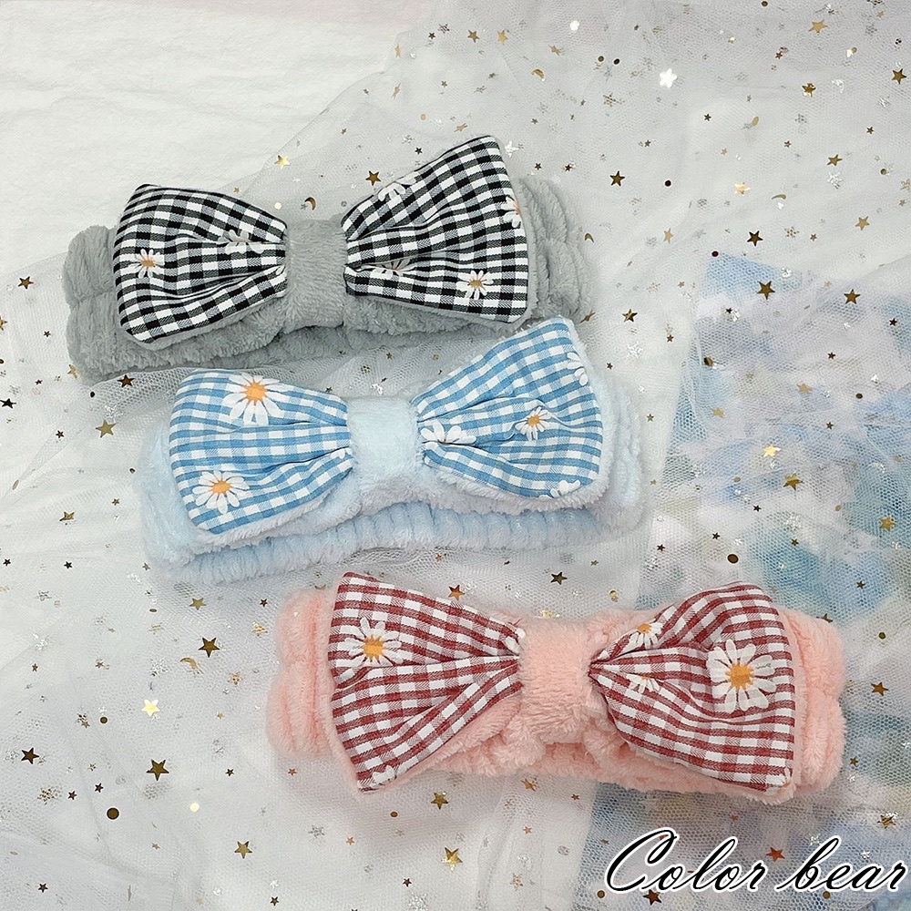 現貨【卡樂熊】蝶結毛絨小雛菊造型洗臉髮帶(三色)