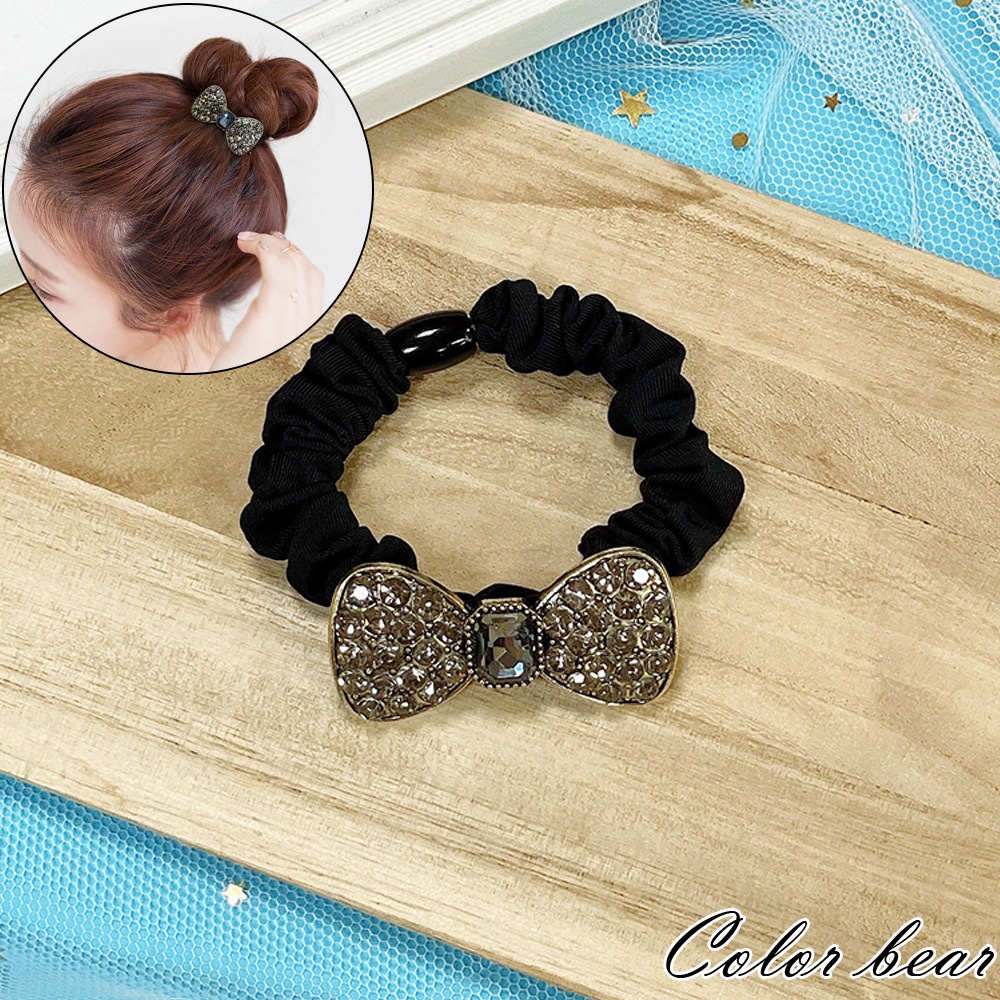 現貨【卡樂熊】韓系氣質水鑽蝶結造型髮束(兩色)