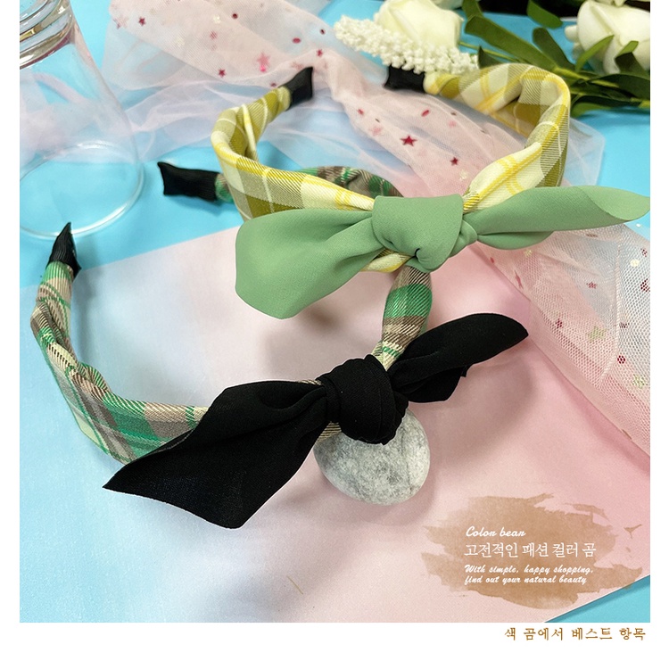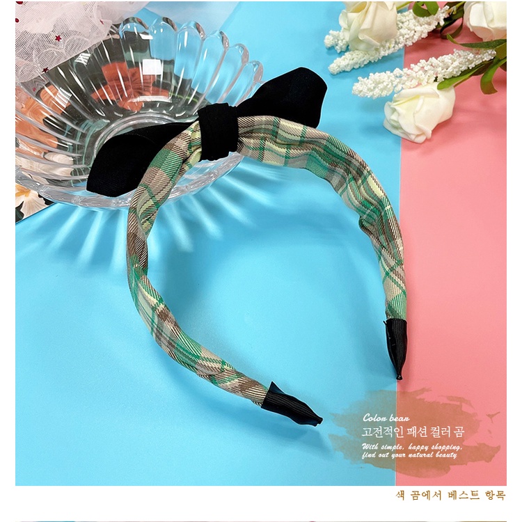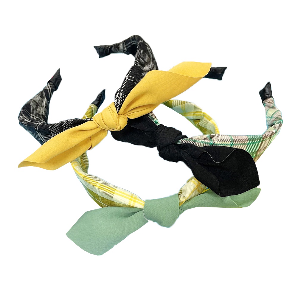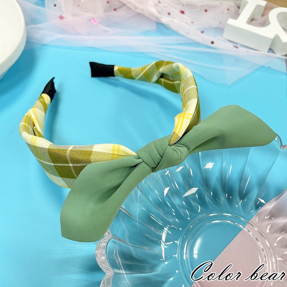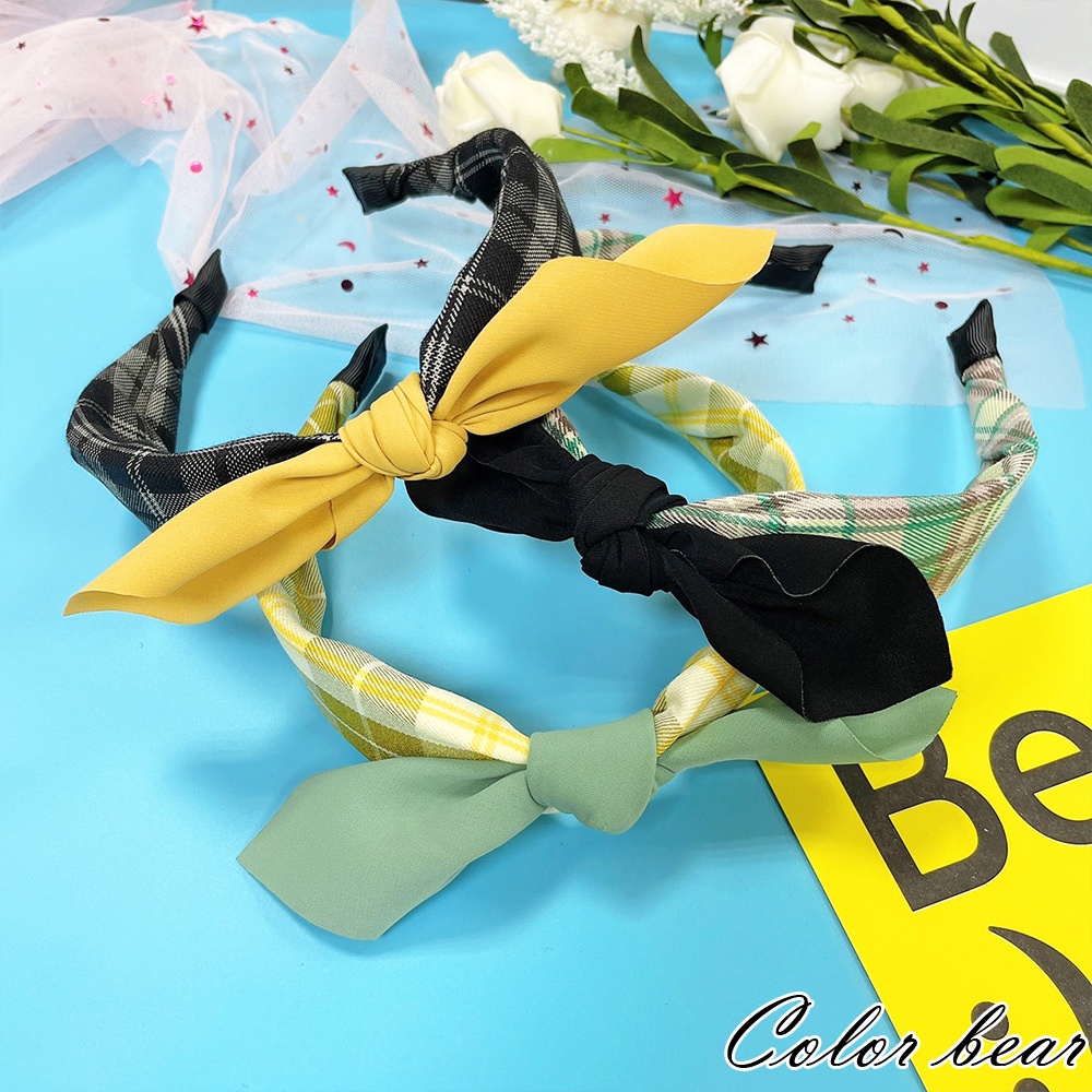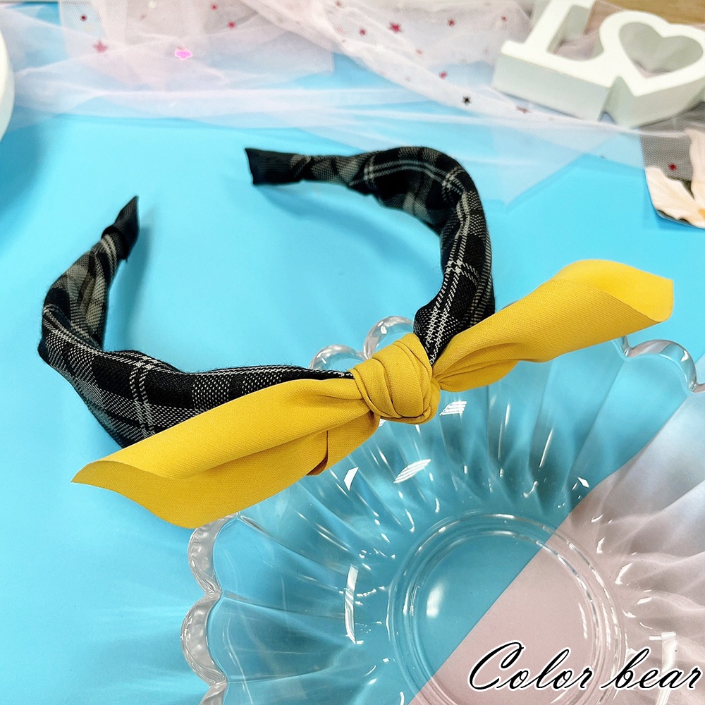 現貨【卡樂熊】韓風撞色格紋雪紡結造型髮箍(三色)