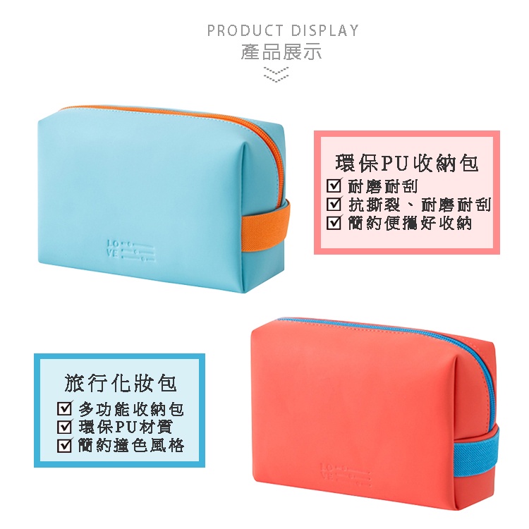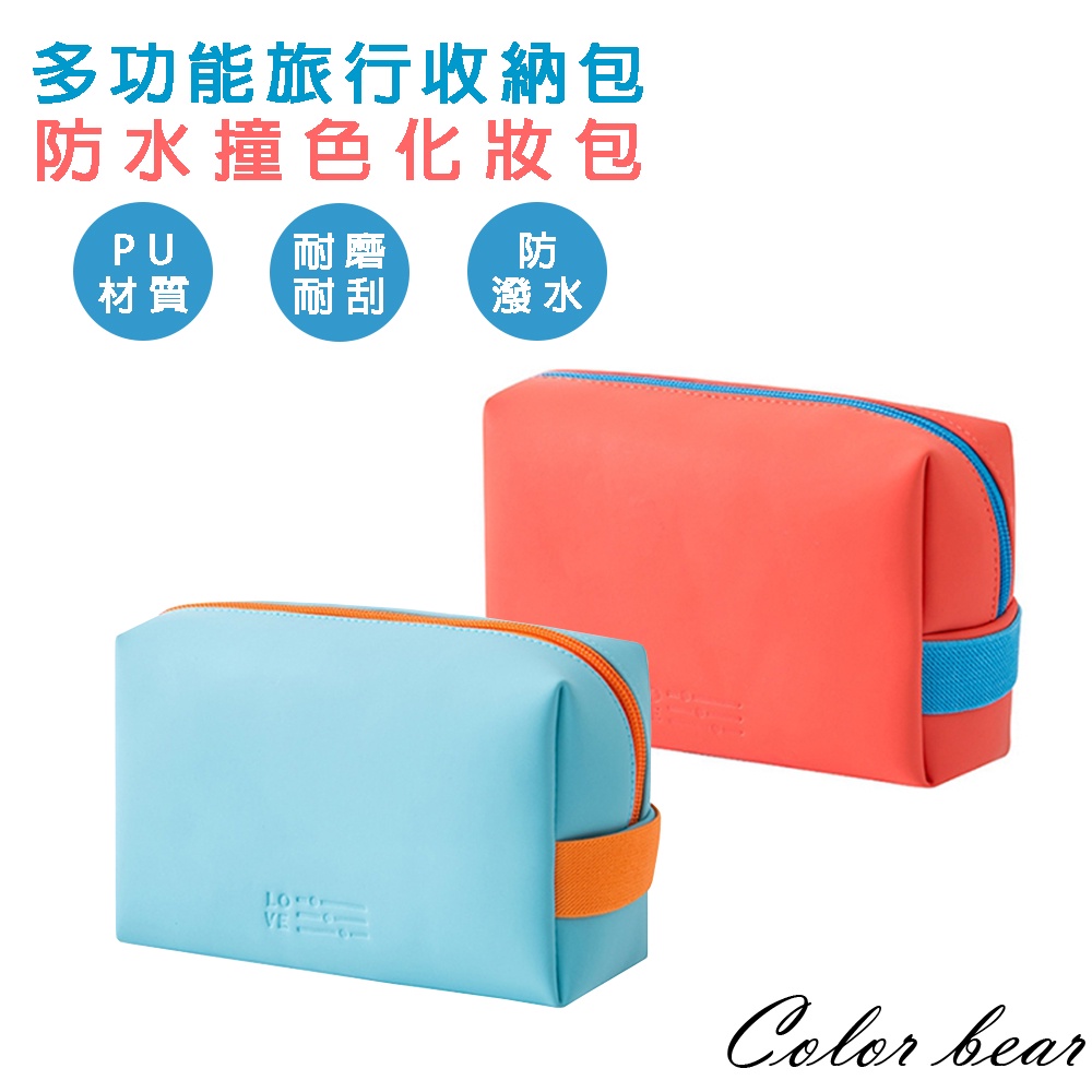 現貨【卡樂熊】PU磨砂質感方形撞色造型化妝包/收納包(兩色)