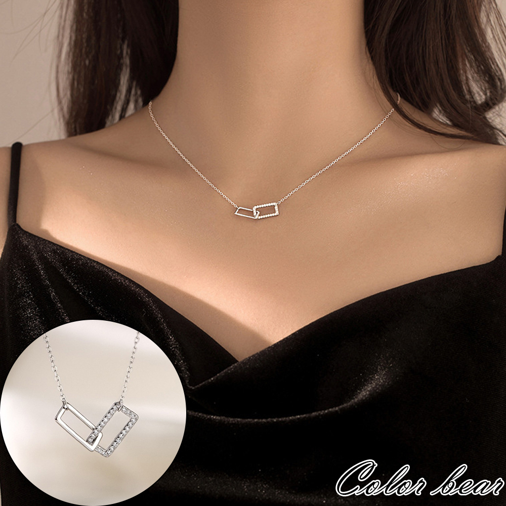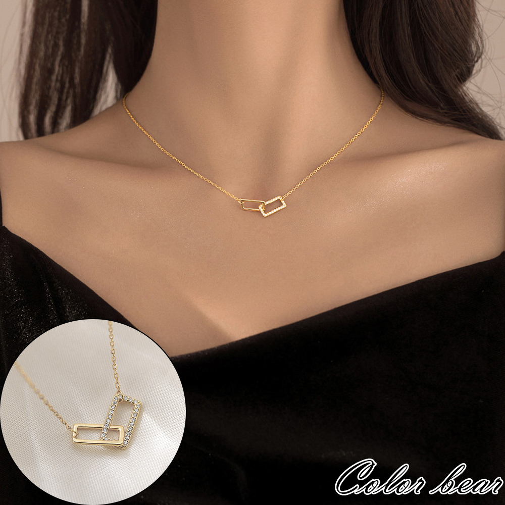 現貨【卡樂熊】簡約輕奢方形水鑽交叉造型項鍊/鎖骨鍊(兩色)