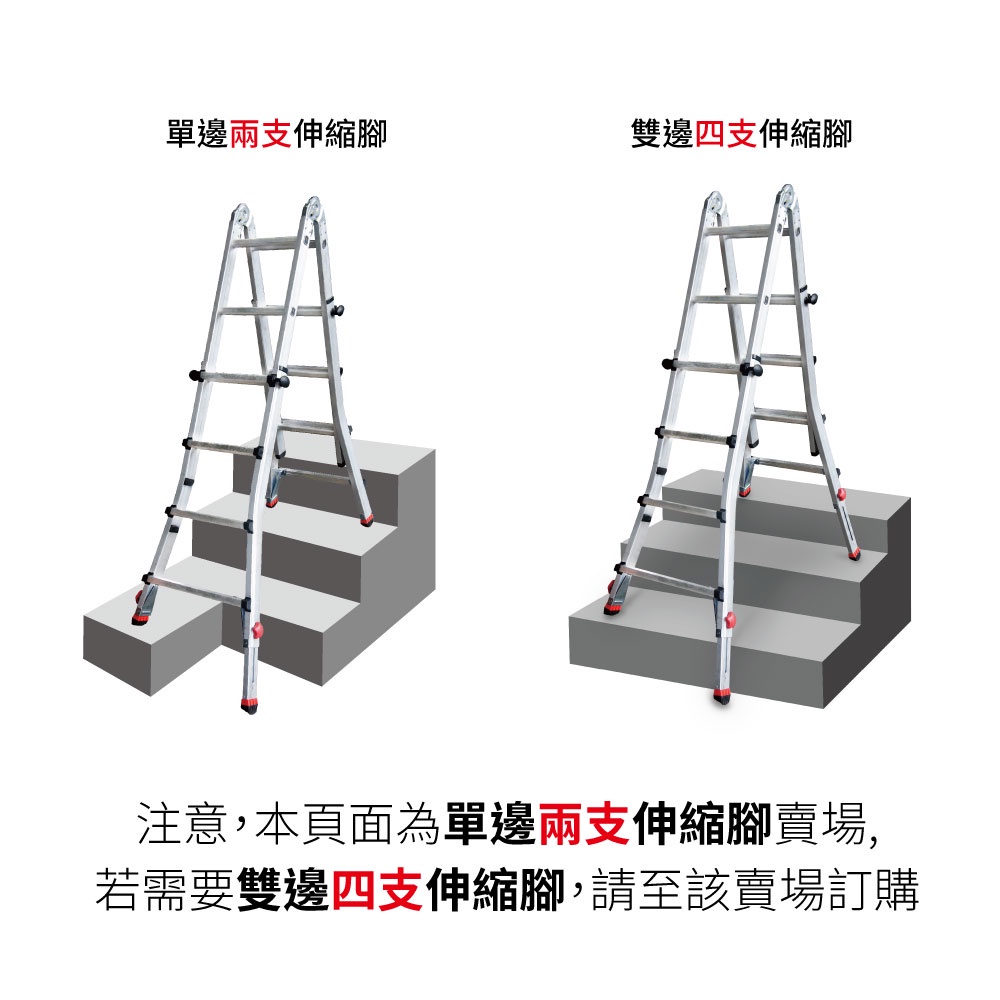 可調式無限梯-單邊伸縮腳 5尺(階)至11尺(階) 直梯/A字梯/樓梯間高低差/關節梯/伸縮調整/荷重150公斤/免運費