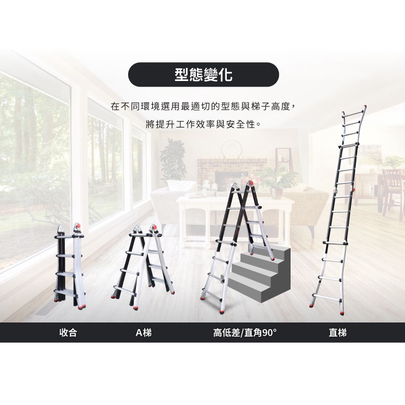 新型-可調式萬用梯 5尺(階)至11尺(階) 直梯/A字梯/樓梯間高低差/關節梯/伸縮調整/荷重150公斤/免運費