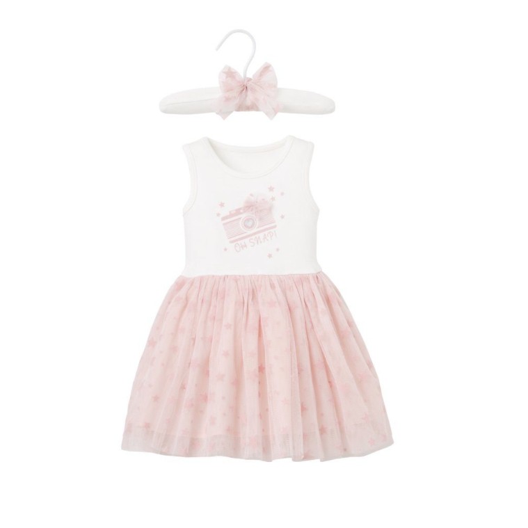 美國 ELEGANT BABY 無袖包屁式洋裝 - 相機粉紅小星星