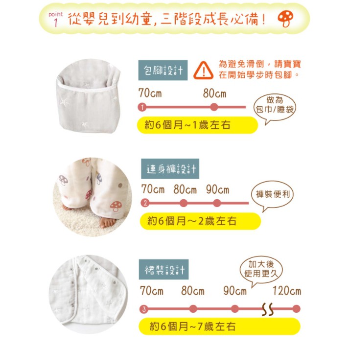日本 Hoppetta 六層紗【純棉】6way可拆袖成長型睡袍