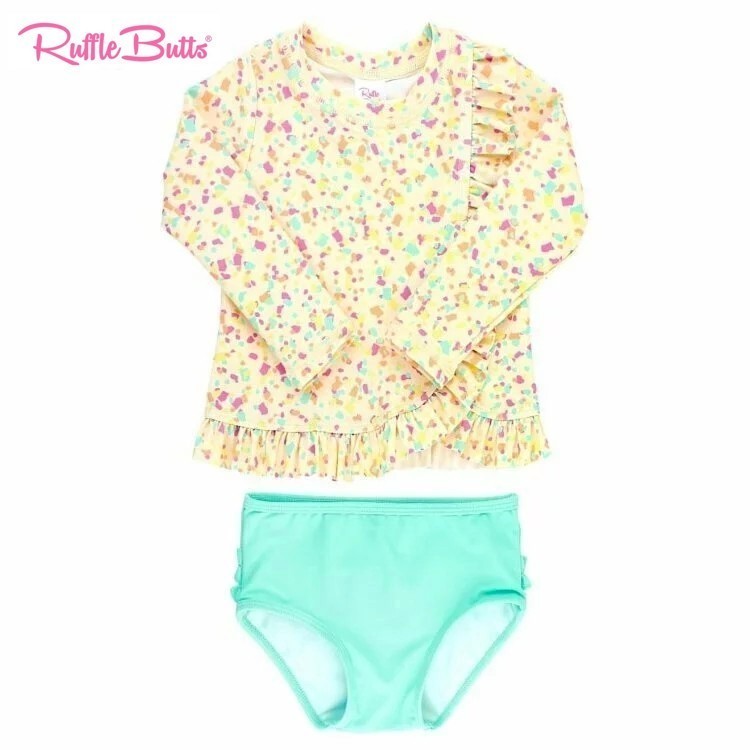 美國 RuffleButts 女童抗UV長袖兩件式泳裝