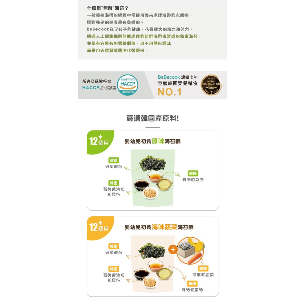 韓國 BEBECOOK 寶膳 嬰幼兒初食系列 - 海苔酥(兩種口味)