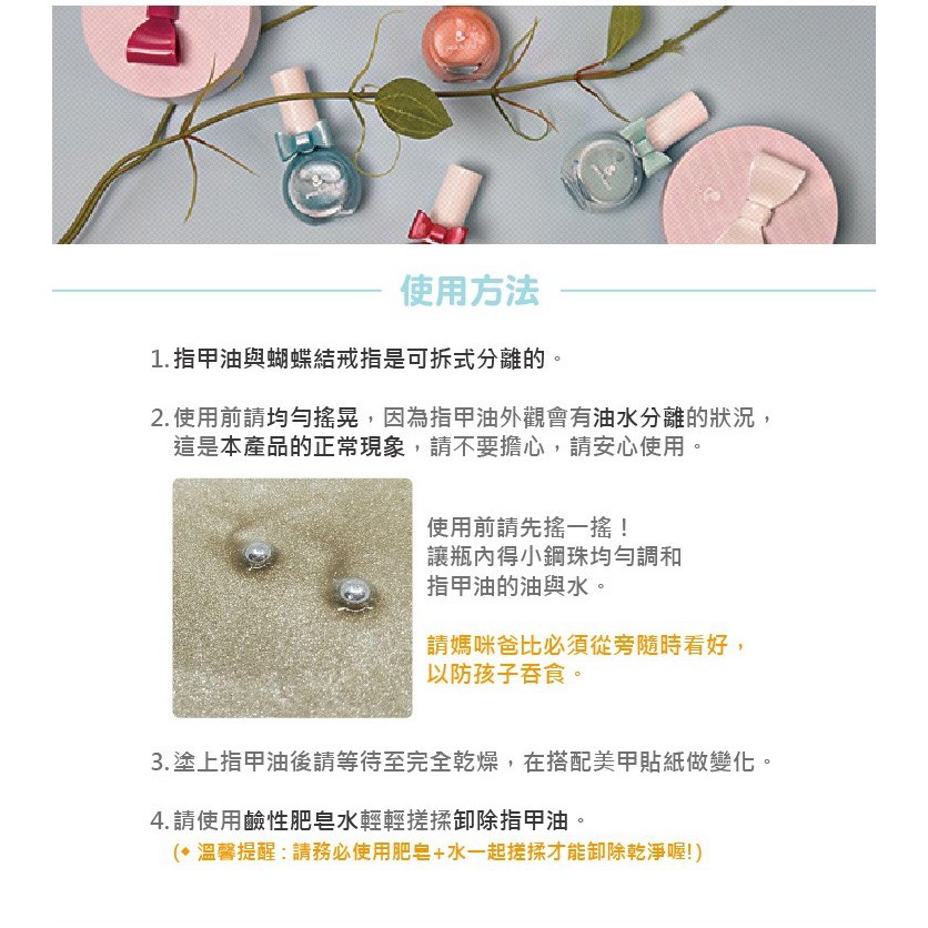 韓國 Peachand 兒童蝴蝶結指甲油 安全水溶性(附戒指) 10ml