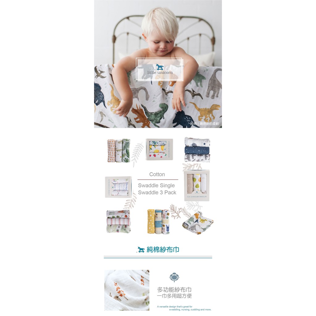 美國 Little Unicorn 純棉紗布巾三入組 多款可選