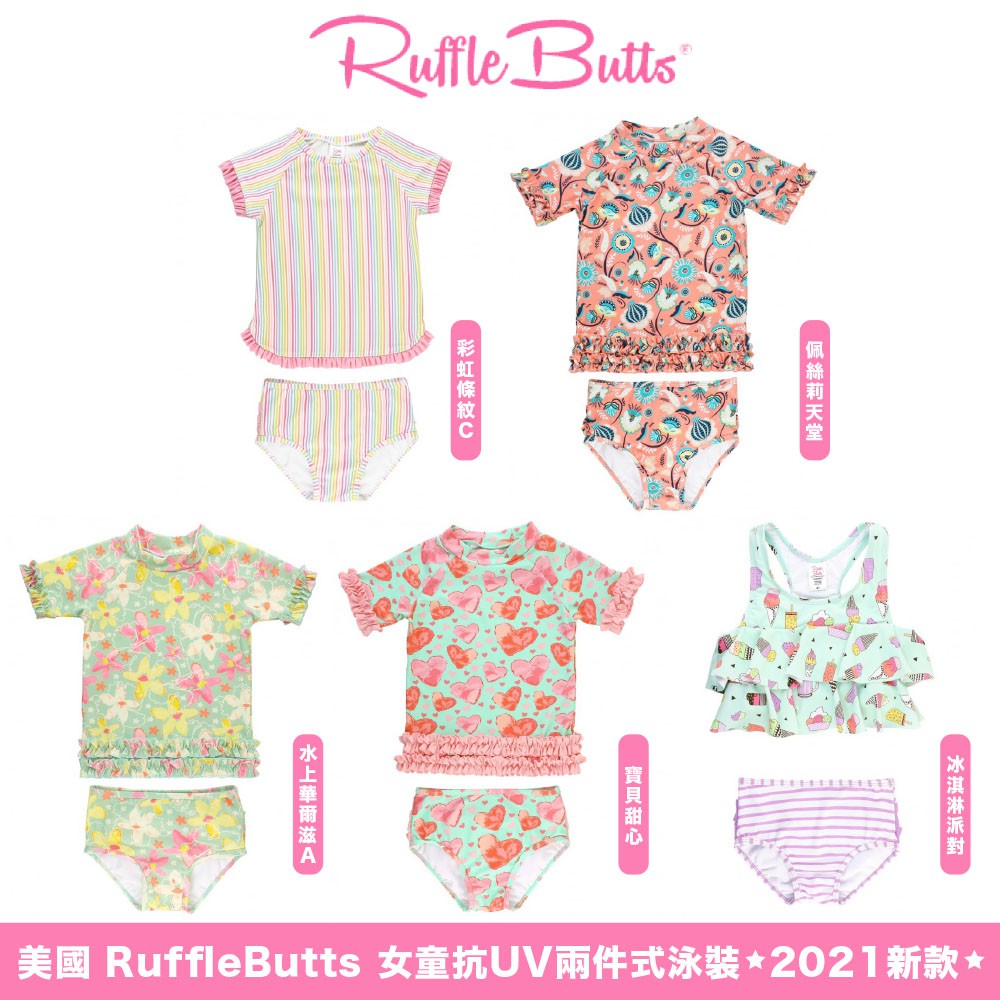美國 RuffleButts 女童抗UV短袖兩件式泳裝