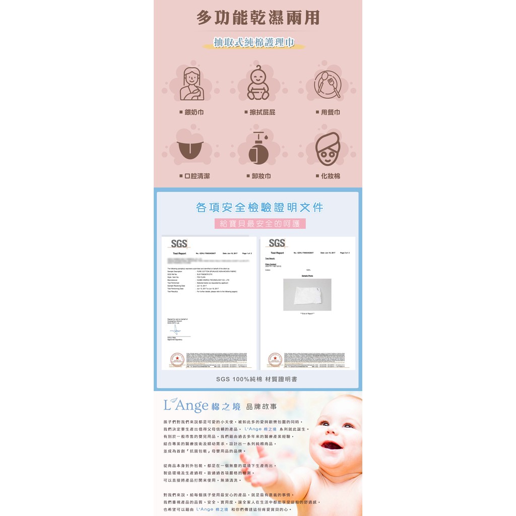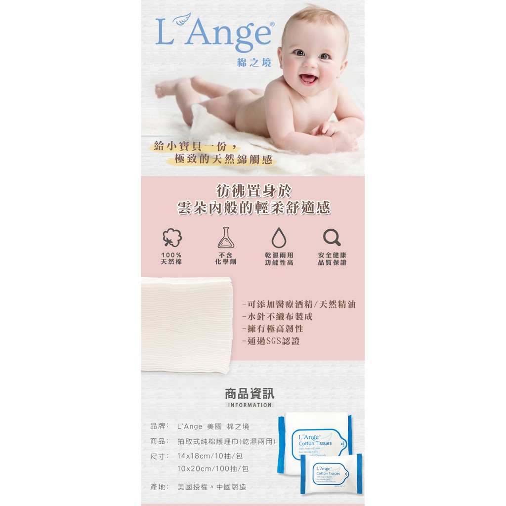 美國 L'Ange 棉之境 乾濕兩用 抽取式純棉柔巾10x20cm 100抽 - 單包