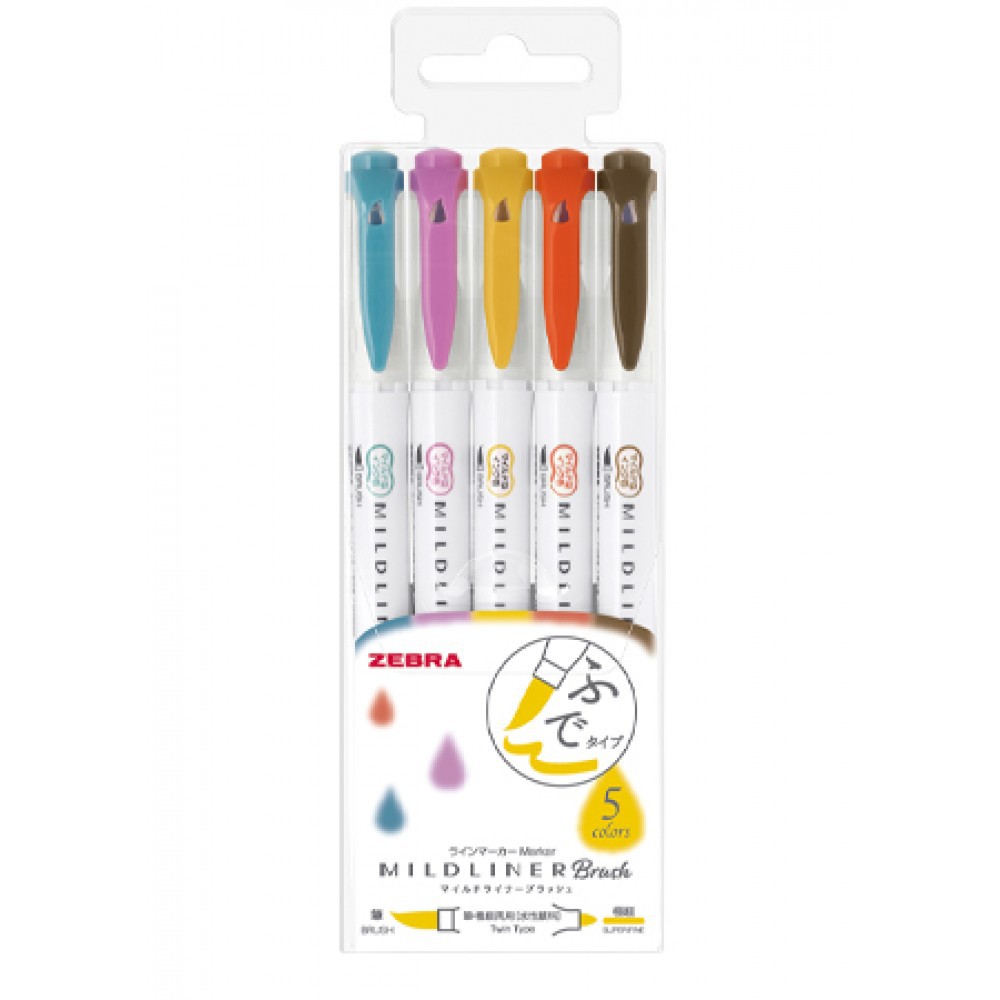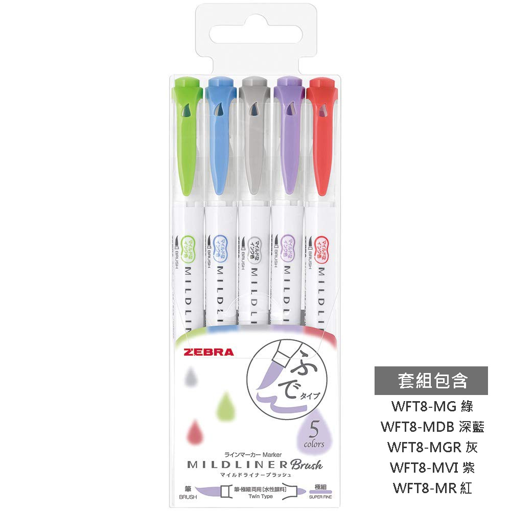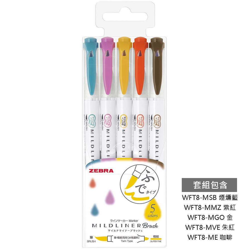 【CHL】ZEBRA MILDLINER WFT8 雙頭螢光筆 五色組 柔繪筆 繪圖 標記 螢光筆 軟頭毛筆 特細