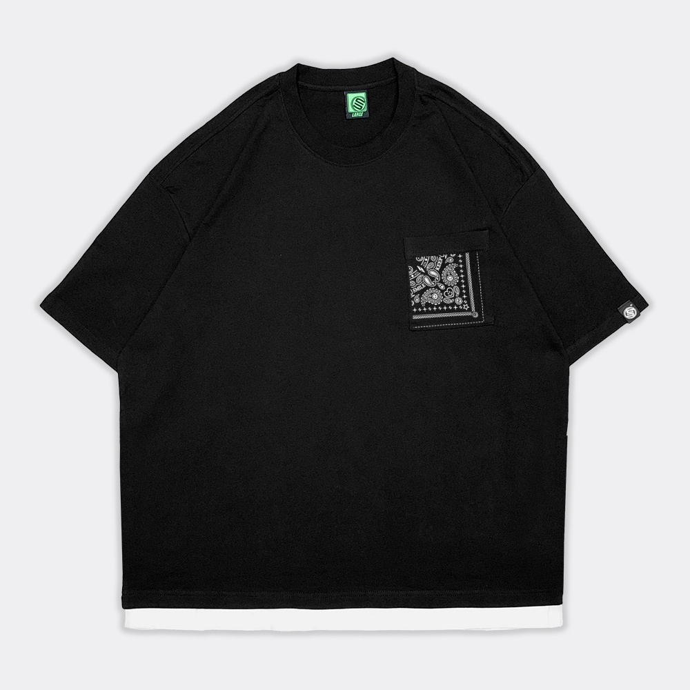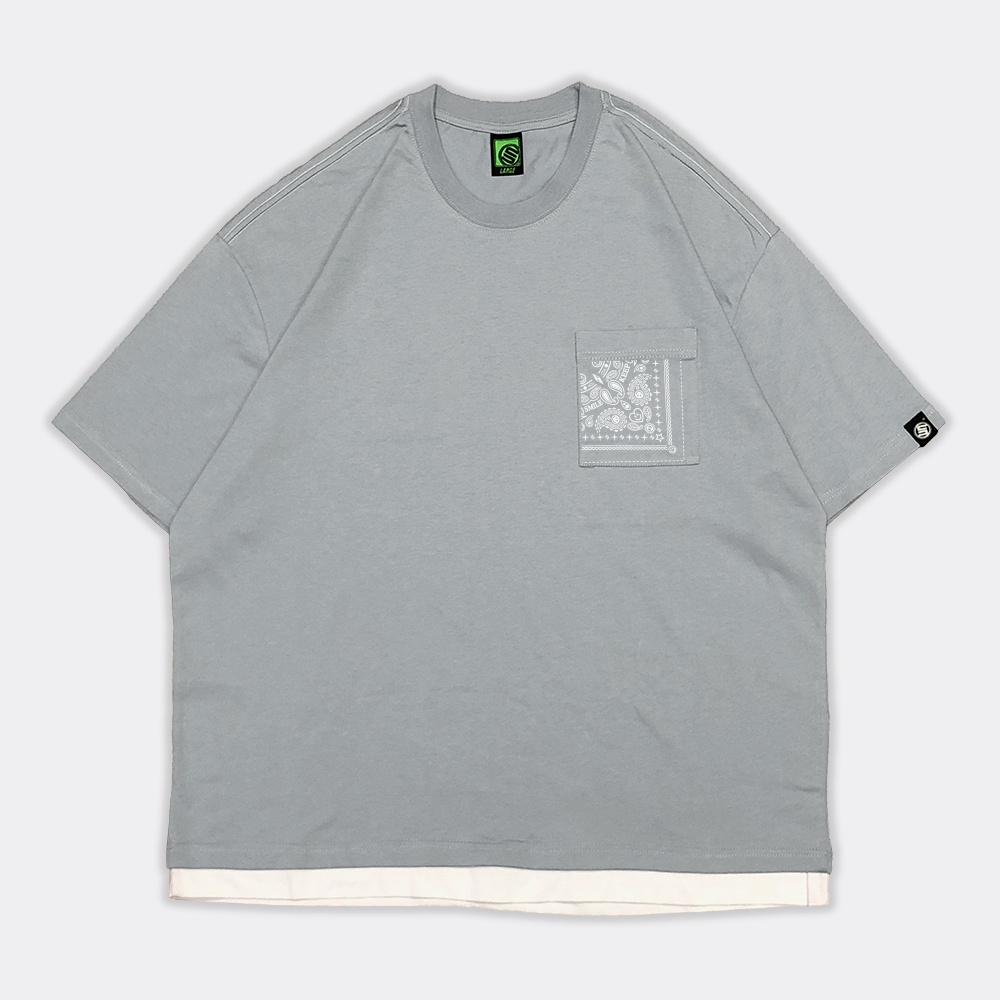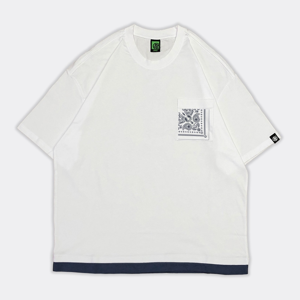【STAGE】 變形蟲寬版假兩件口袋短T 可可棕/灰藍/霧灰藍//黑色/白色
