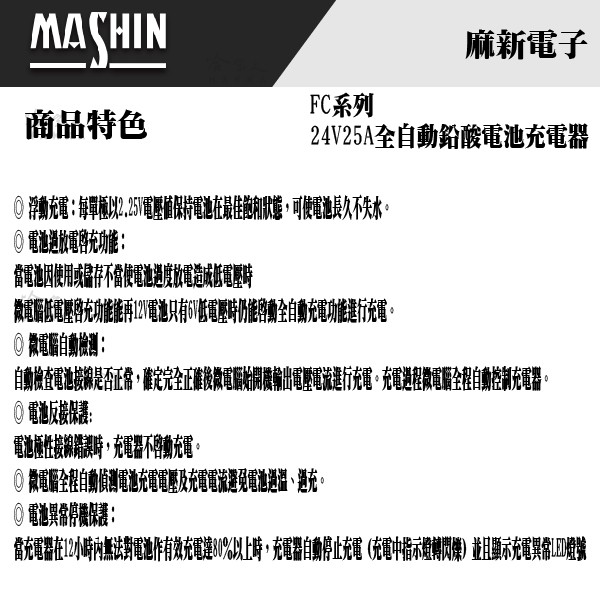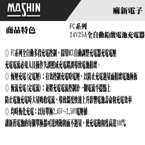 【麻新電子】 FC2440 24V 25A 全自動充電器 電瓶充電器