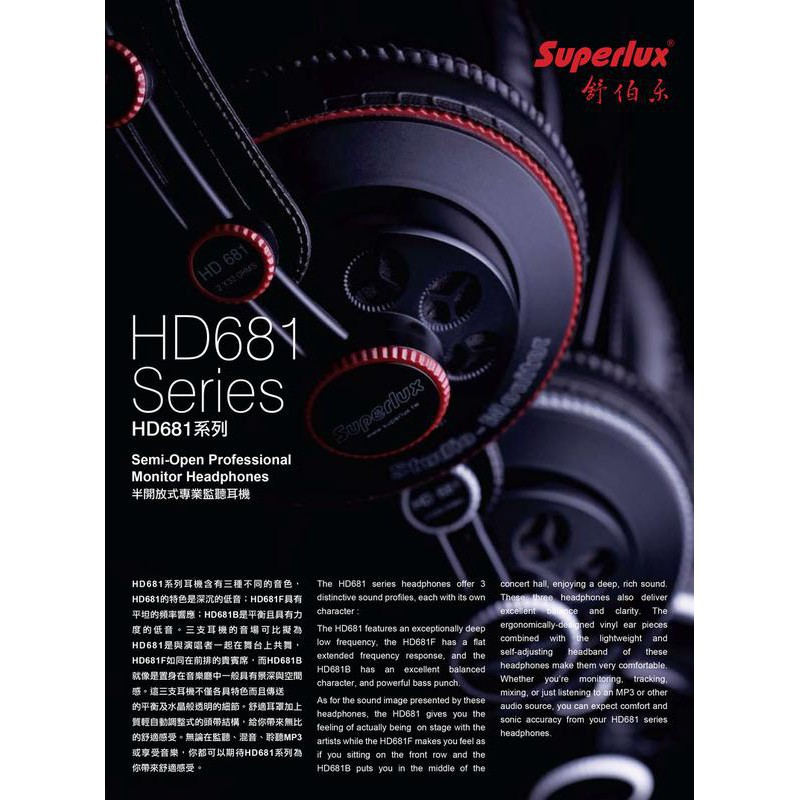 Superlux HD681 HD681B HD681F 半開放式 耳罩式 舞台 錄音室 監聽耳機 [唐尼樂器]