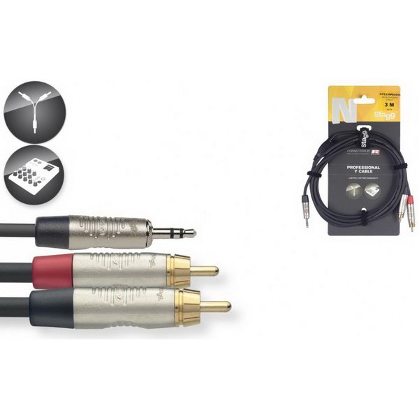 Stagg NYC3/MPS2CMR (3米) 3.5mm 對 RCA 梅花頭 混音器 音源訊號線[唐尼樂器]