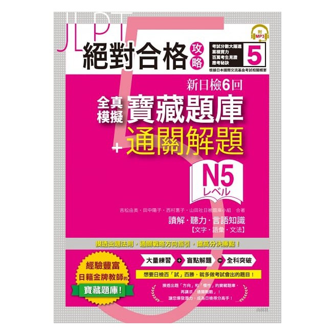(山田社)絕對合格攻略!新日檢6回全真模擬N5寶藏題庫【讀解、聽力、言語知識〈文字、語彙、文法〉】(16K+MP3)
