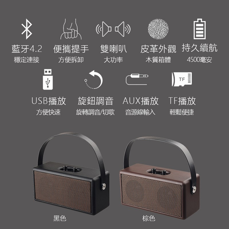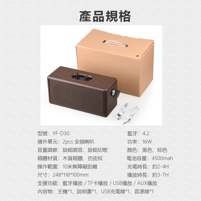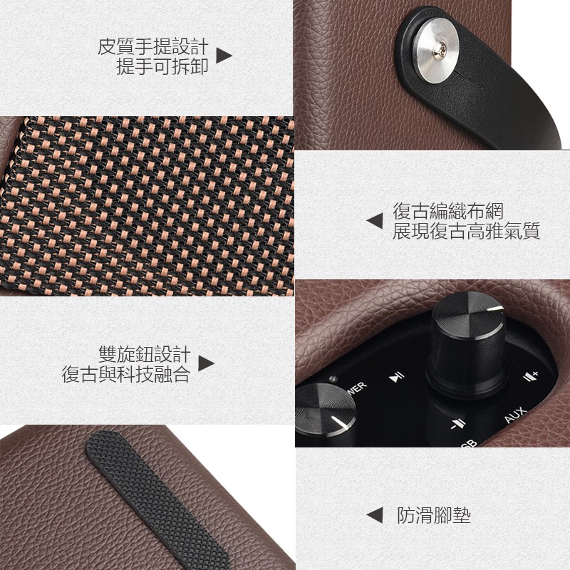 【耀飛】YOUNGFLY 復古風攜帶式無線藍牙喇叭 YF-D30 質感皮革 金屬旋鈕16W大輸出