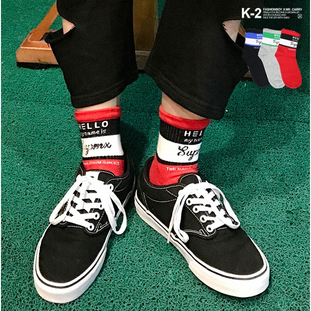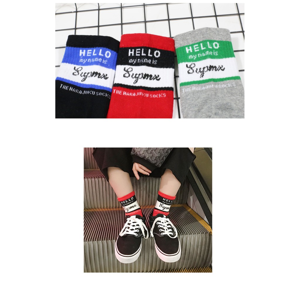 HELLO 跳色 中筒襪 穿搭 滑板 街頭 潮流 搭配款 基本款 襪子【K079】