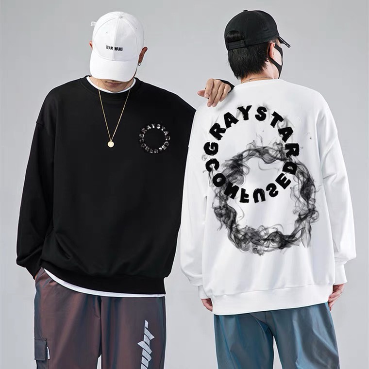 【K-2】字母環繞 圓形 煙霧 迷霧 內刷毛 大學T 簡約穿搭 韓系歐巴 文青 長袖上衣 休閒【B38029】