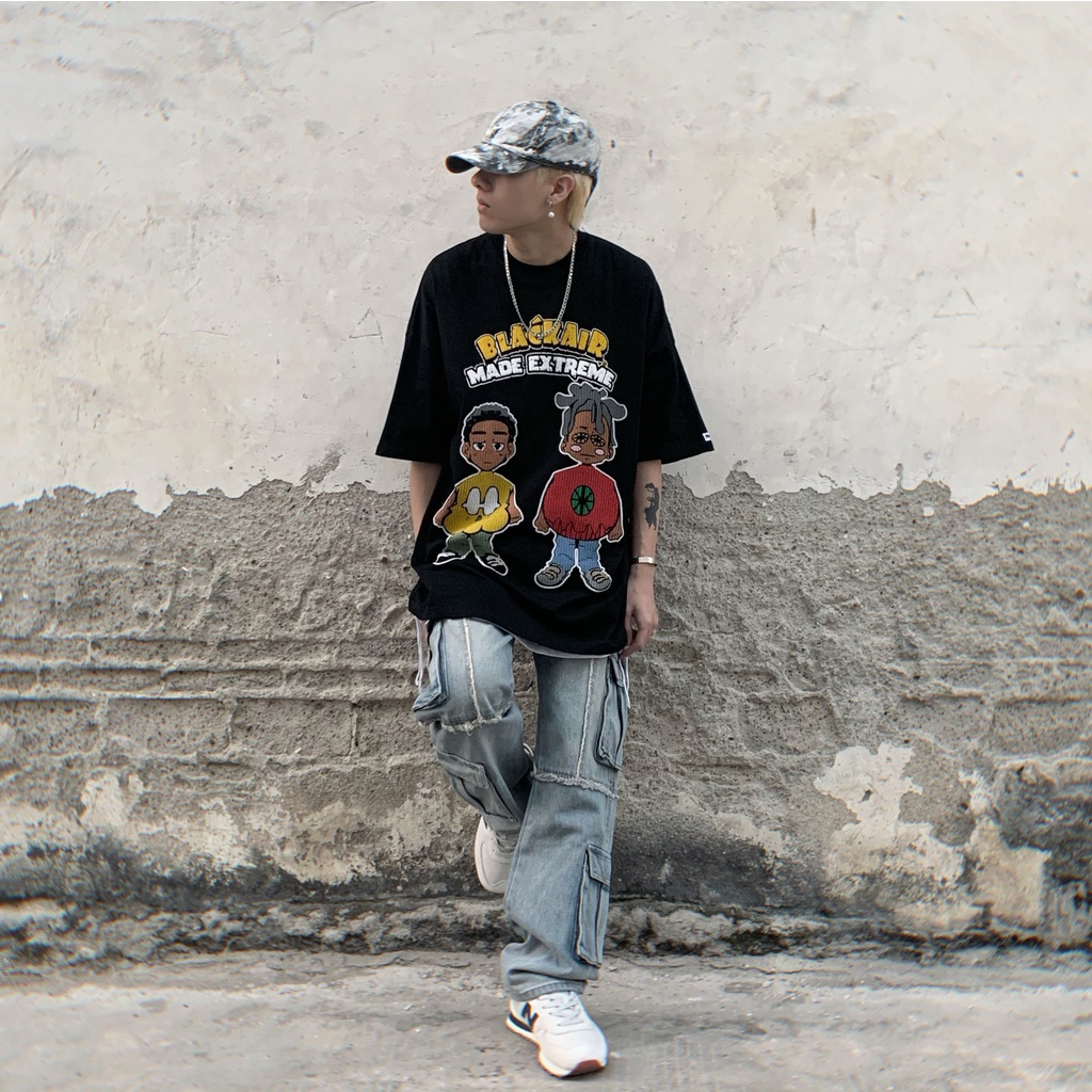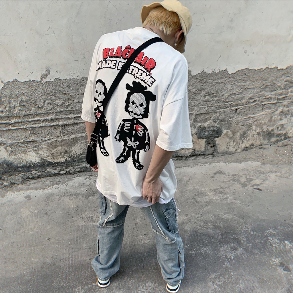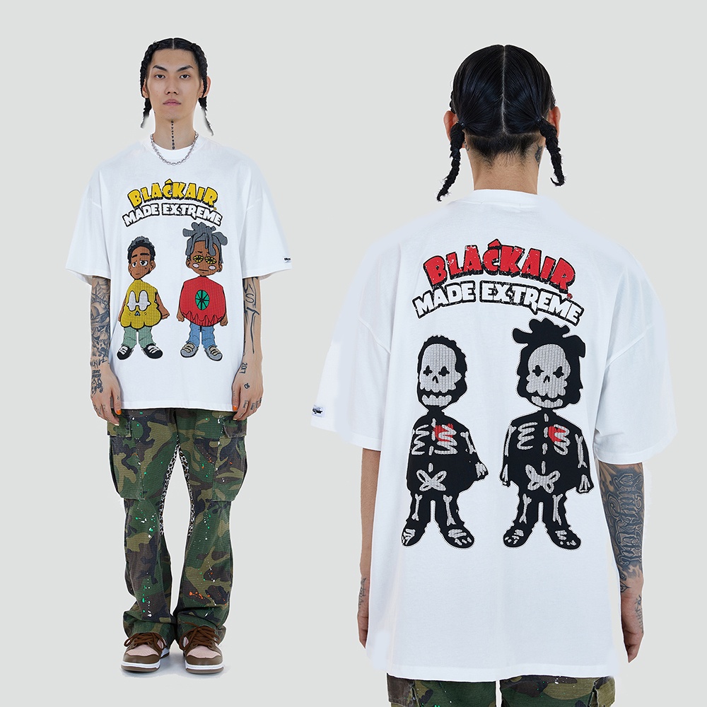 【K-2】BLACK AIR 發泡 立體感 胖肚肚人 黑人 骷顱人 嘻哈仔 饒舌 落肩寬鬆 短袖上衣 【B2179】