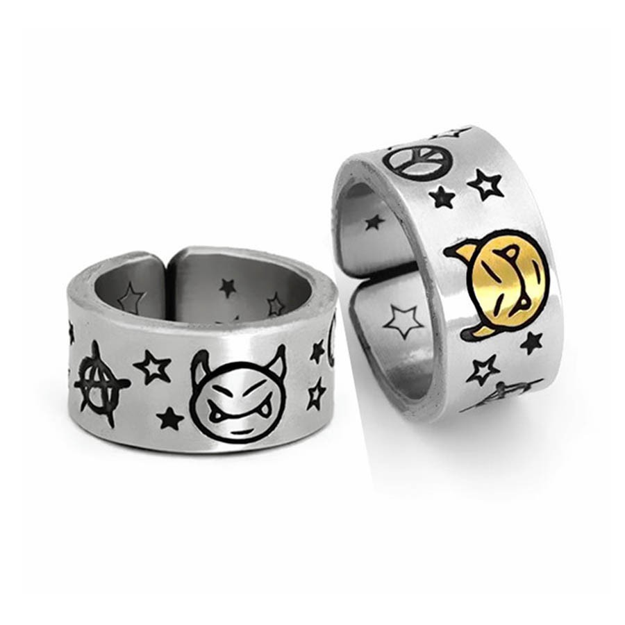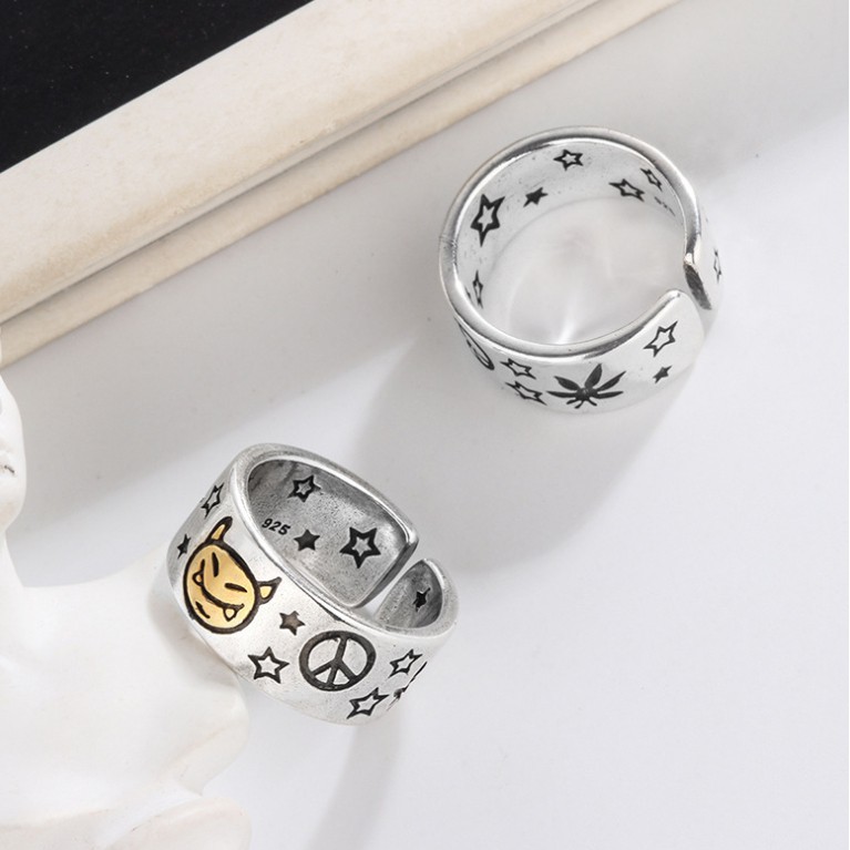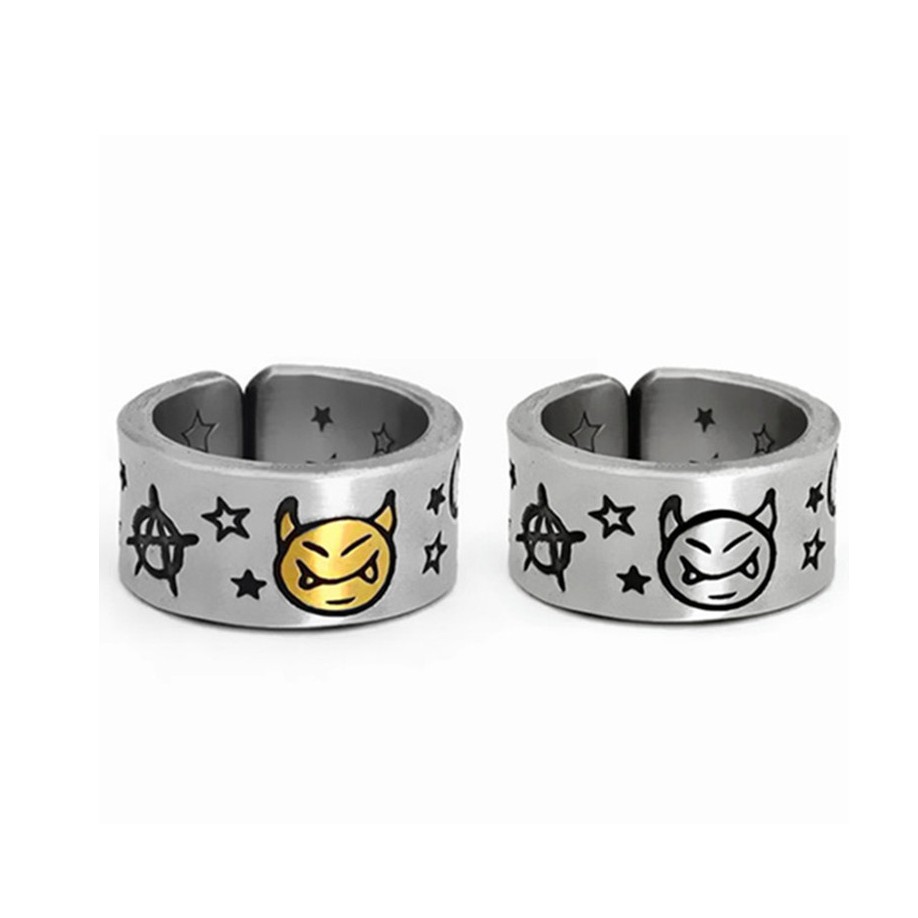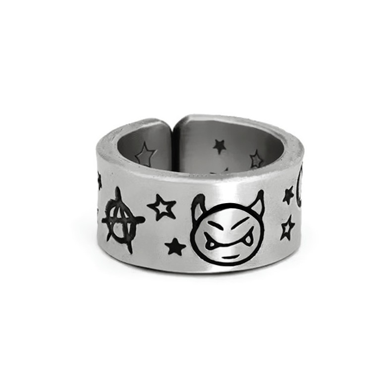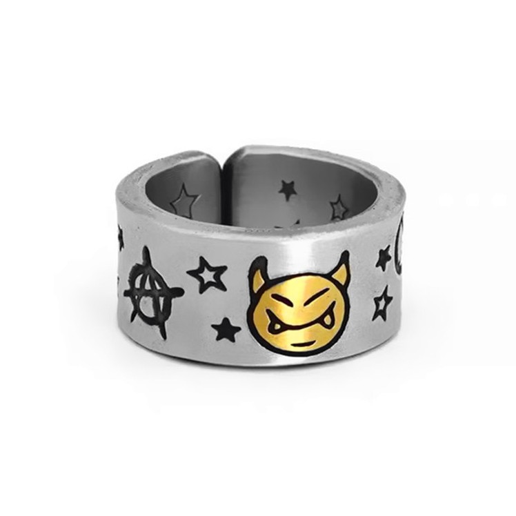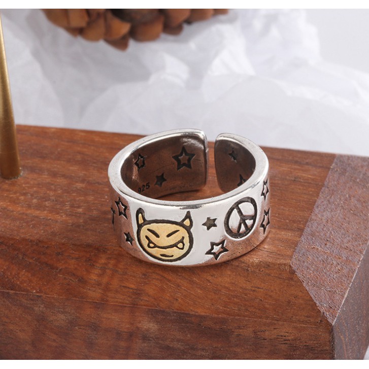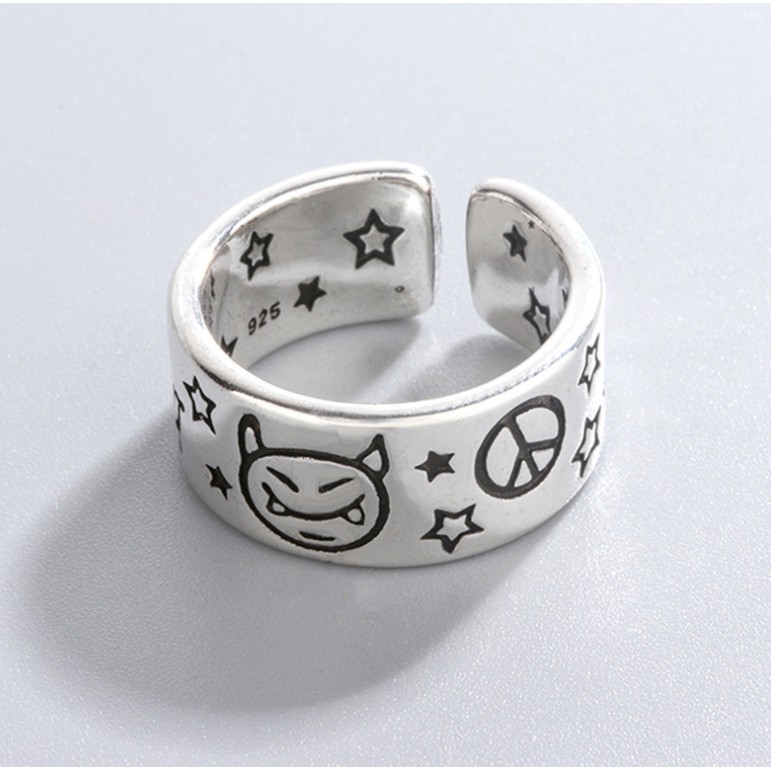 【K-2】小惡魔 戒指 反戰 星星 立體雕刻 銀飾 飾品 可調式 星星戒指 惡魔戒指 情侶 禮物【KM21】
