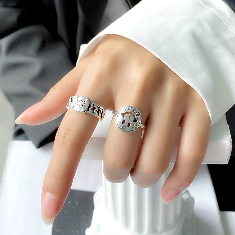 【K-2】LOVE ME 微笑 小圓戒 四葉草 造型 飾品 戒指 配件 韓國 文青 文藝 男女不拘 情侶款【KM25】