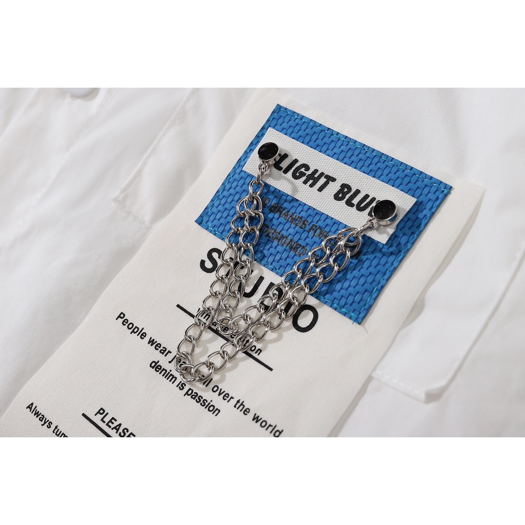 【K-2】素面鏈條 簡約小標襯衫 素色襯衫 長袖襯衫 白襯衫 黑襯衫 造型 表演 穿搭 襯衫 情侶【B1520】