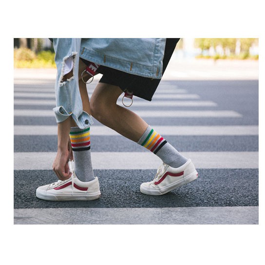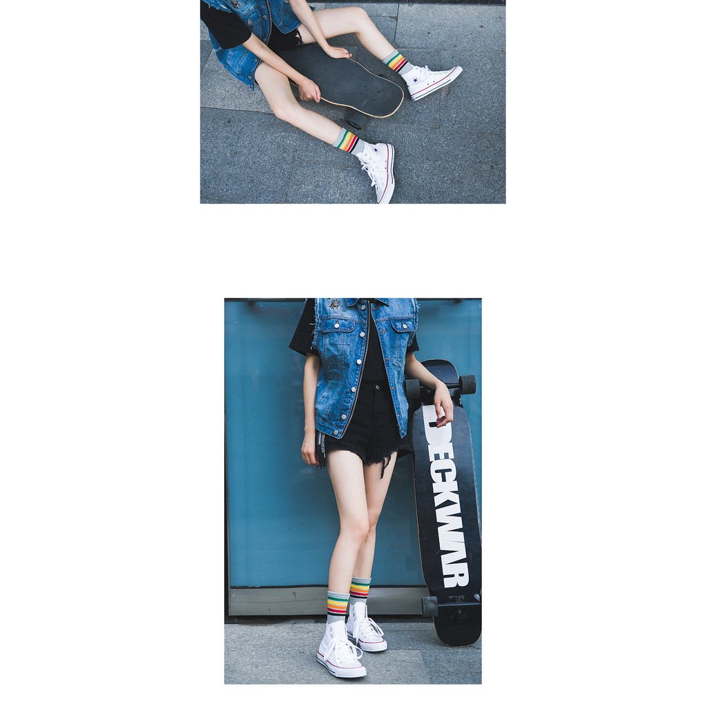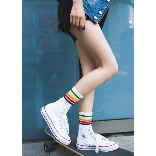 【K-2】彩虹 七彩 條紋 繽紛 夏日 配色 百搭 情侶 長襪 襪子 高筒襪【K065】