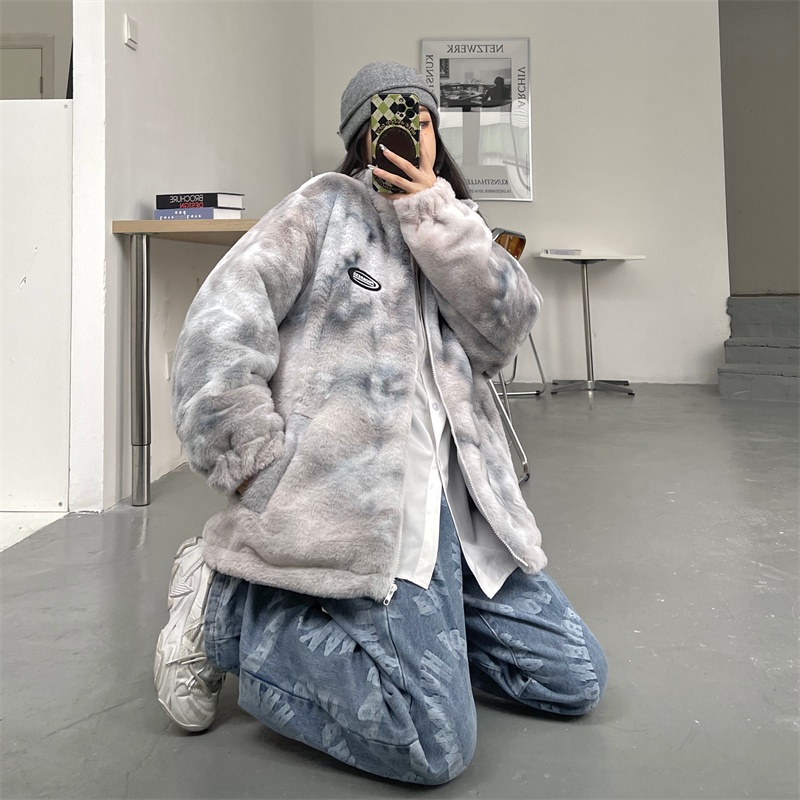 【K-2】潑墨 雪雕絨 渲染外套 毛毛外套 兔寶寶 熊寶貝 厚外套 雪毛 外套 情侶 渲染【B7052】