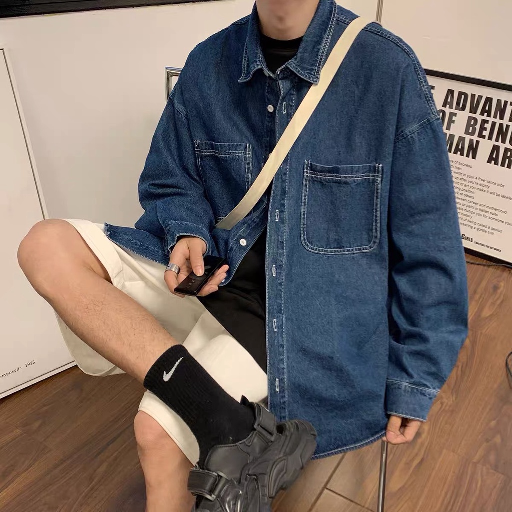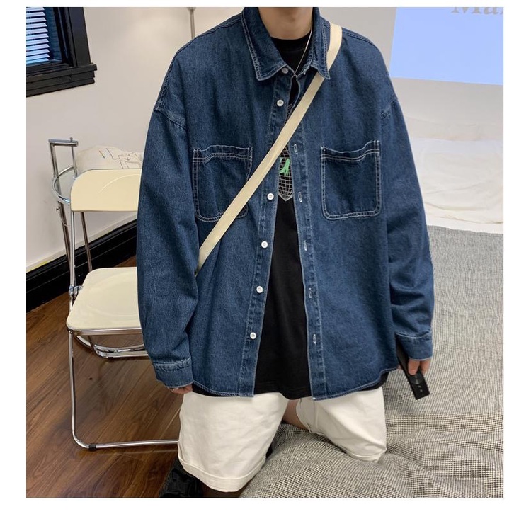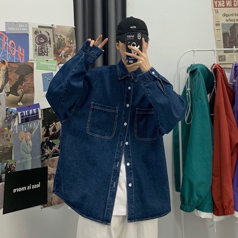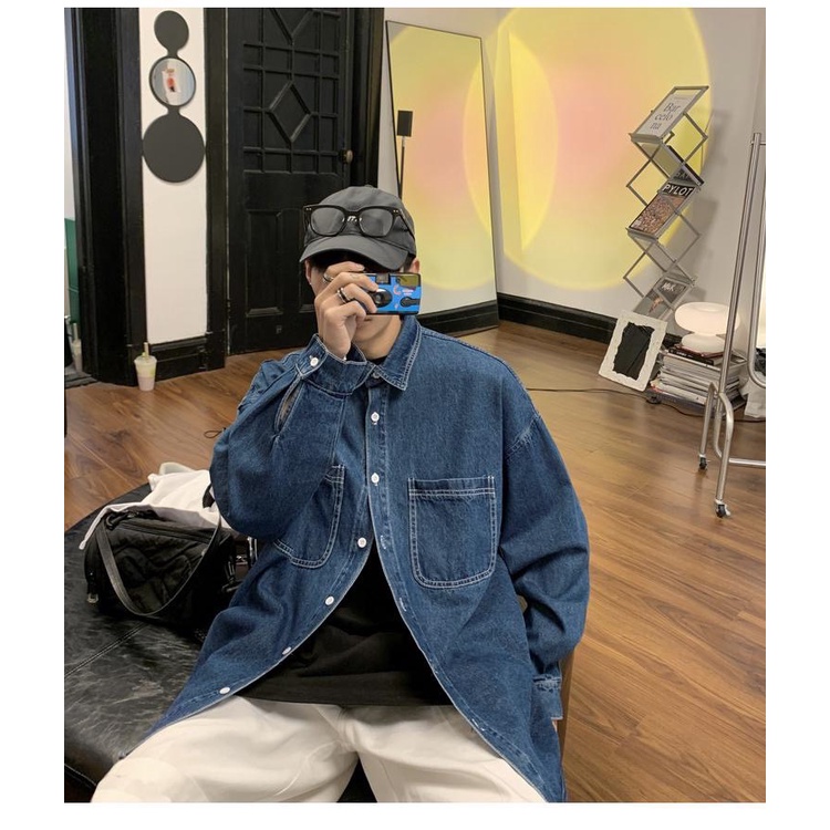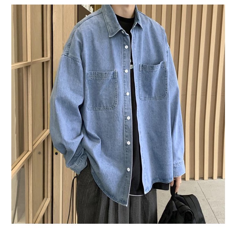 【K-2】大口袋 牛仔襯衫 素面襯衫 素色 牛仔 襯衫 長袖襯衫 情侶 街頭 文青 穿搭 牛仔外套【B2206】