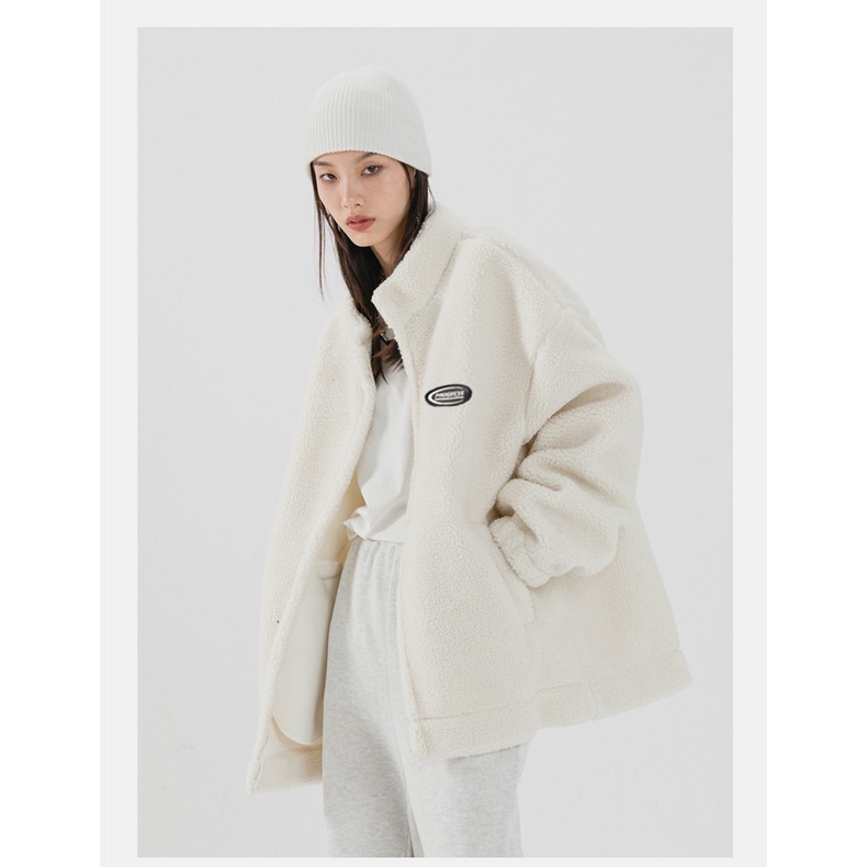 【K-2】羊羔毛 立領 小圓標 秋冬 保暖 外套 羊羔毛外套 情侶 上衣 保暖外套 休閒外套【B7049】