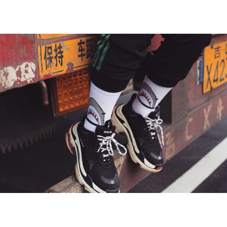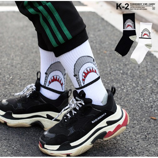【K-2】大白鯊 長襪 中筒襪 鯊魚 潮流 襪子 趣味 穿搭 搭配 襪 白襪 造型襪【K050】