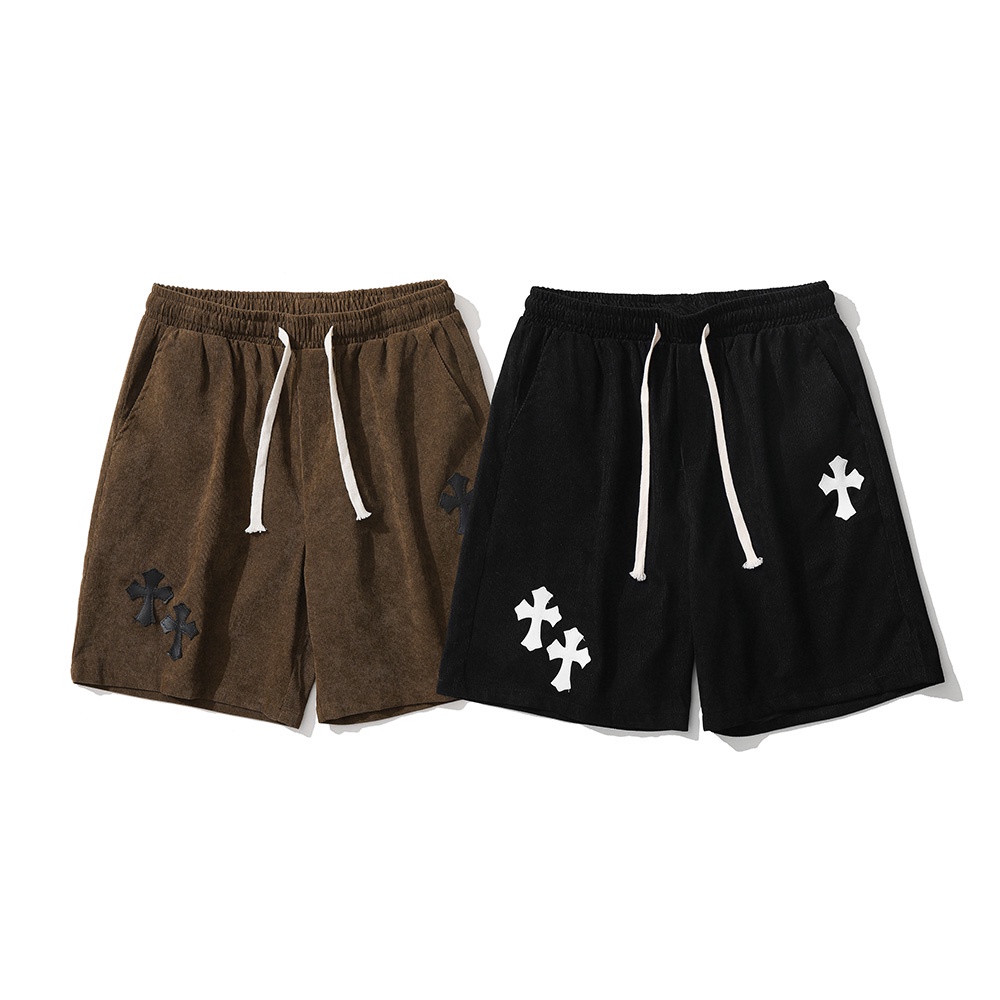 【K-2】十字架 造型 燈芯絨 Y2K 短褲 抽繩 設計 鬆緊腰圍 質感滿分 穿搭 街頭 個性【B3162】