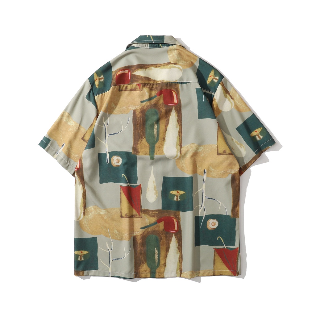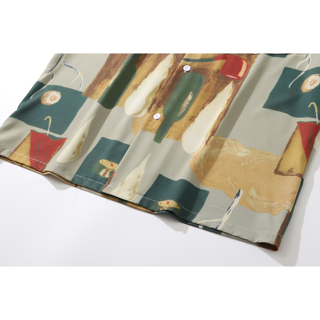 【K-2】酒瓶 煙管 雨傘 滿版 口袋短袖襯衫 INS 港風 海邊 復古 襯衫 寬鬆 落肩 痞子襯衫【BX608】