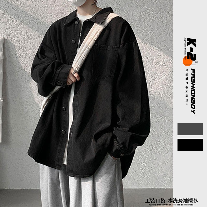 【K-2】CITYBOY 水洗襯衫 工裝襯衫 素面 水洗 街頭 穿搭 襯衫 長袖襯衫 口袋襯衫 K2 文青【D6919】