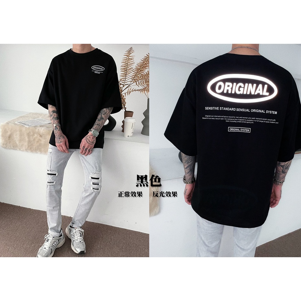 【K-2】韓國 反光 ORIGINAL 太空棉 寬鬆 落肩 男女不拘 韓國男裝 短T 韓國T恤 男生T恤【KK383】