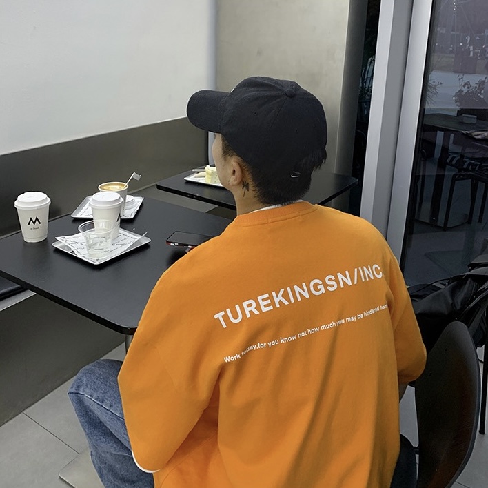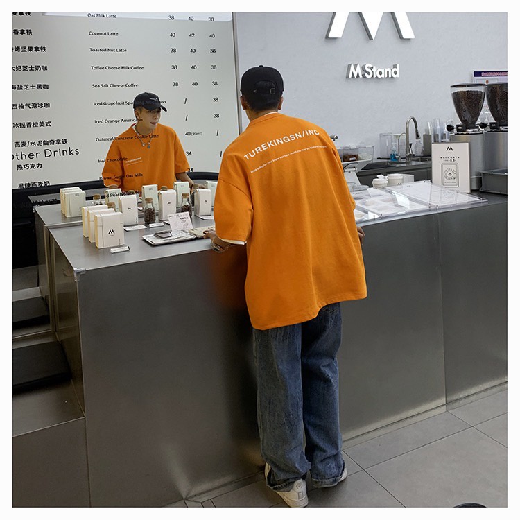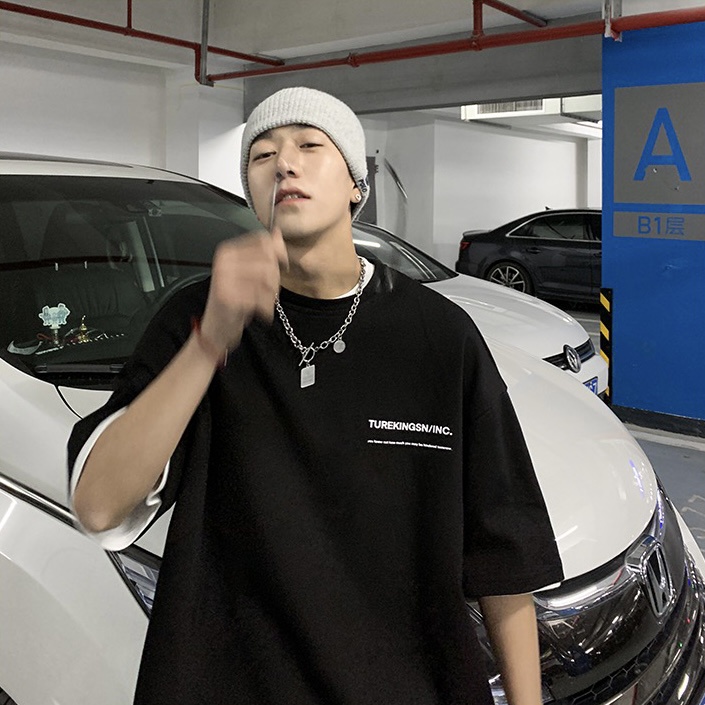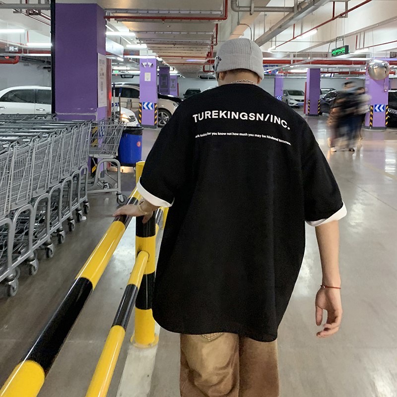 【K-2】韓國 TUREKINGSN/INC. 基礎 情侶穿搭 簡約 潮流 短袖上衣 寬鬆落肩 個性 百搭【B6289】