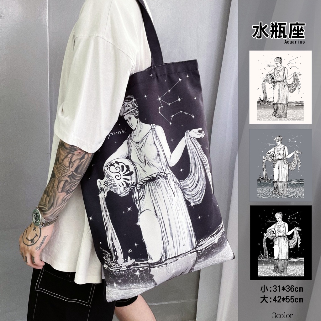 【K-2】十二星座 帆布袋 購物袋 肩背 環保 袋子 星座 bag 手提袋 單肩包 提袋 情侶 禮物 K2【km72】