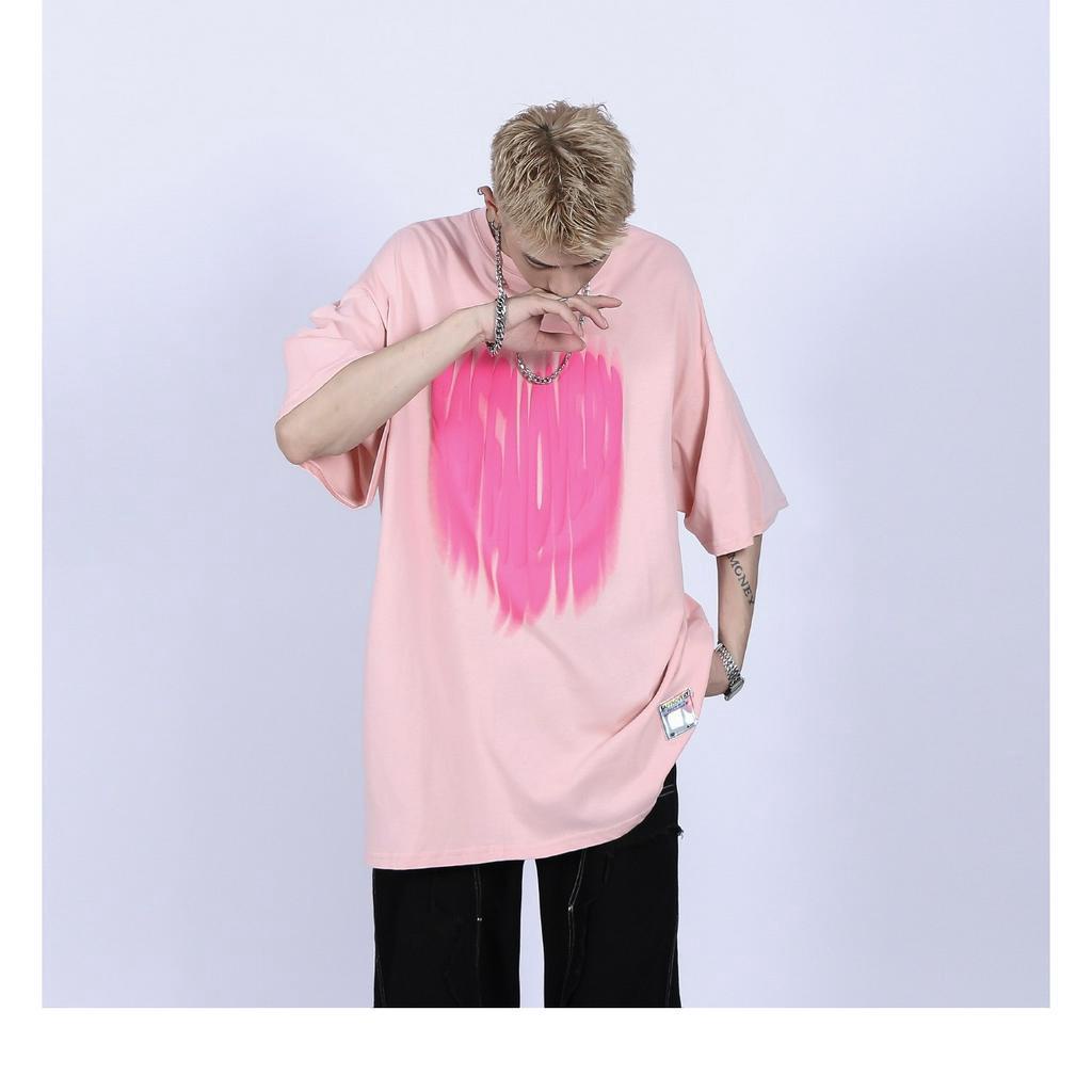 【K-2】立體發泡 幻影 愛心 桃紅色 愛心 超Q 短袖上衣 短T 穿搭 男女不拘 寬鬆 五分袖【KF0025】