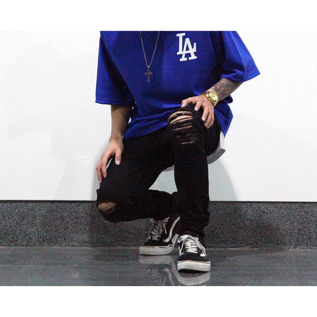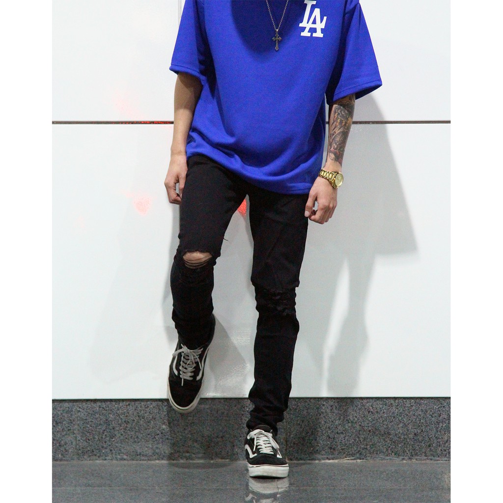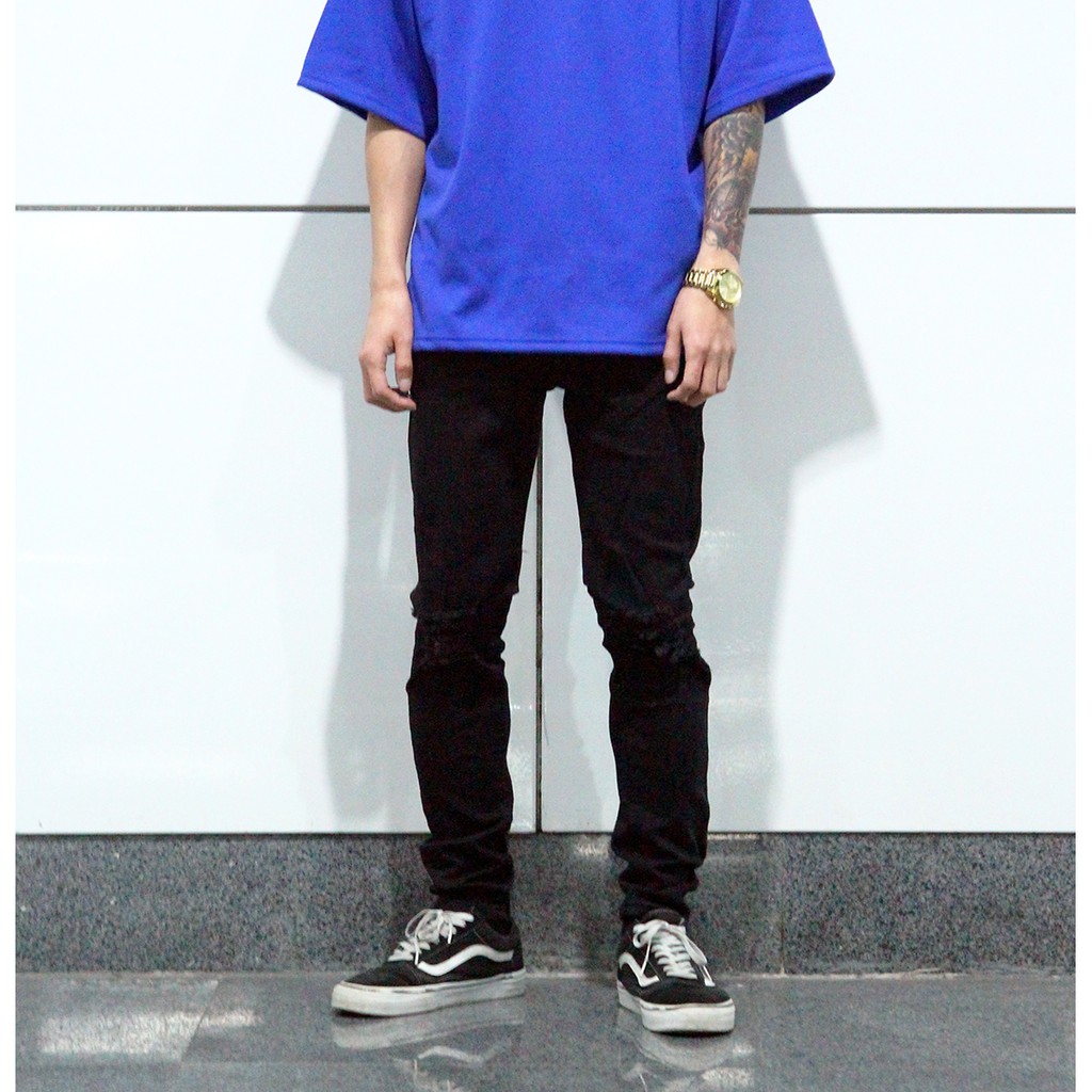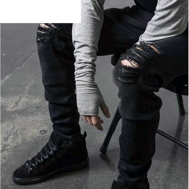【K-2】貓抓鬚破 全長 膝蓋破壞 經典 修身 夜店 派對 必穿 黑牛仔褲 韓版 黑破褲【K6607】