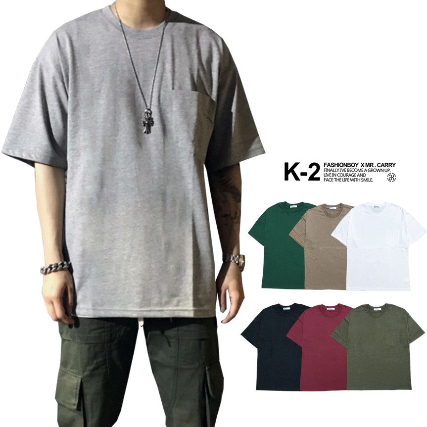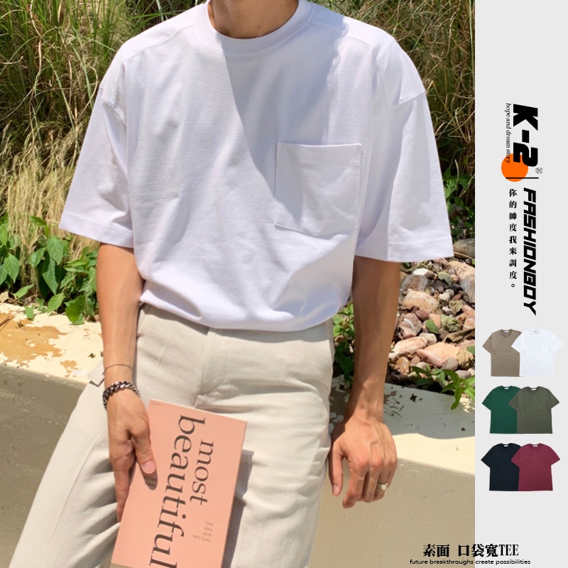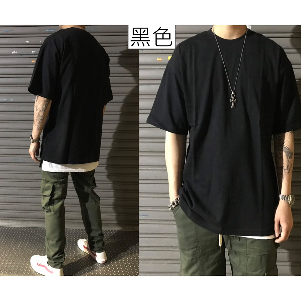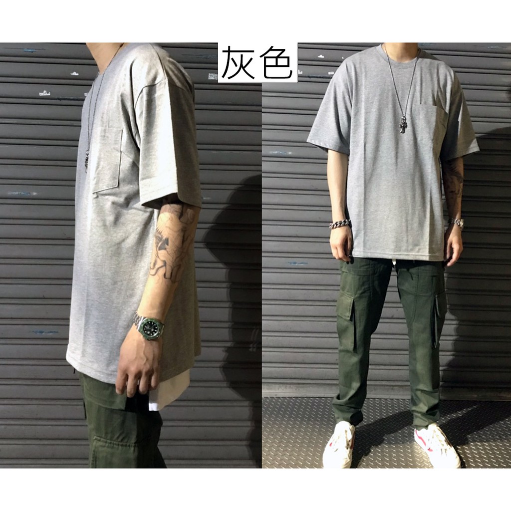 【K-2】OVERSIZE 五分 寬版T 口袋T 落肩 美式 口袋短T 穿搭 素T 寬鬆 情侶 男女不拘【KTOP】