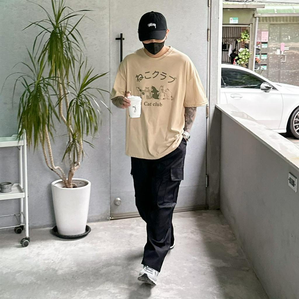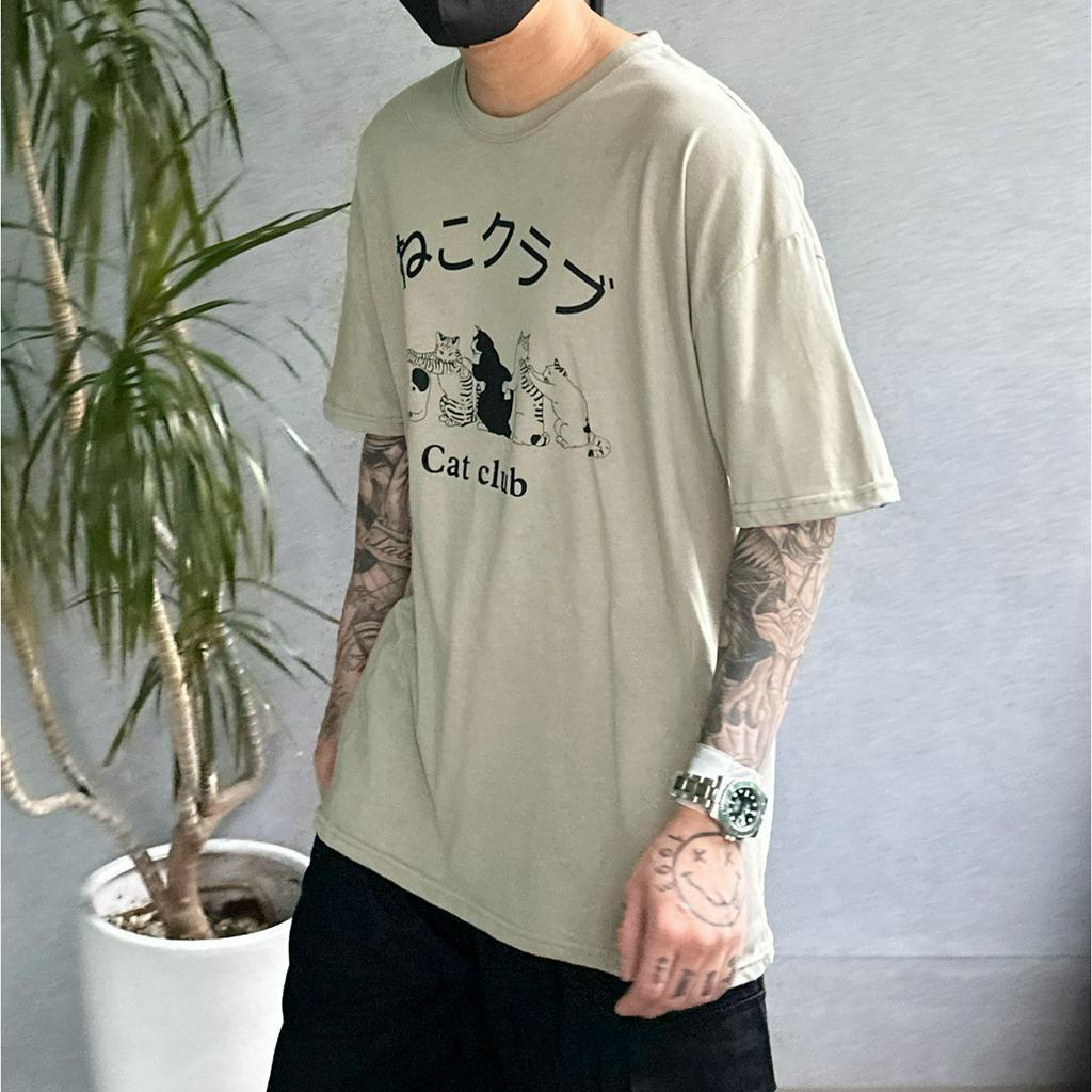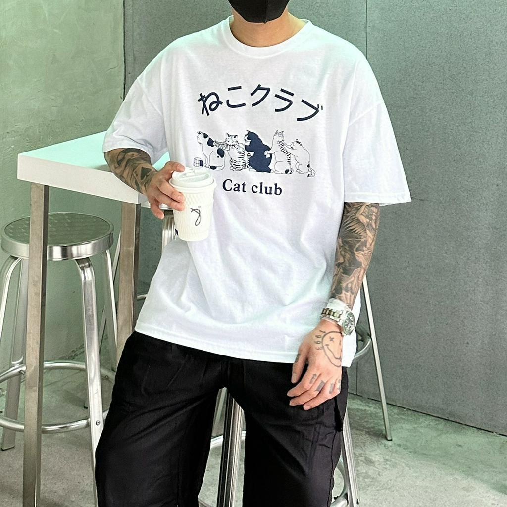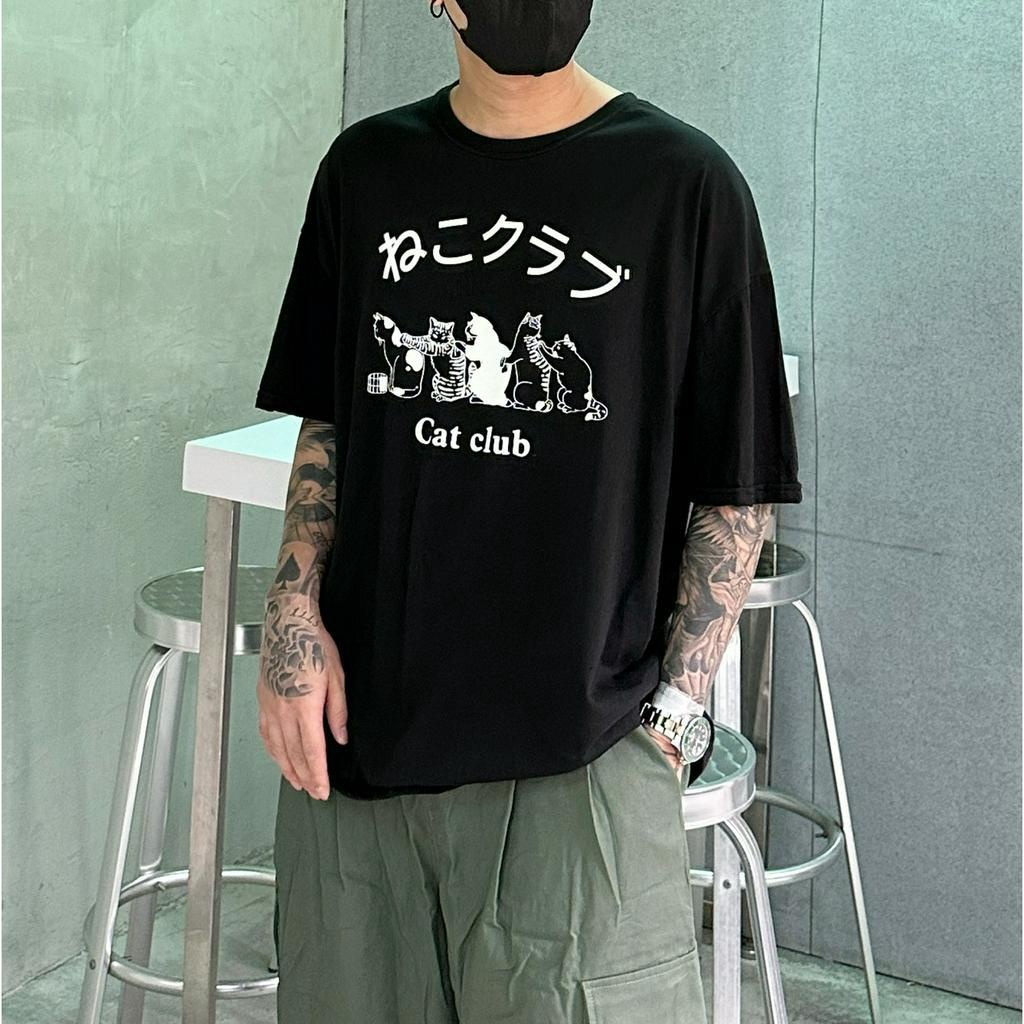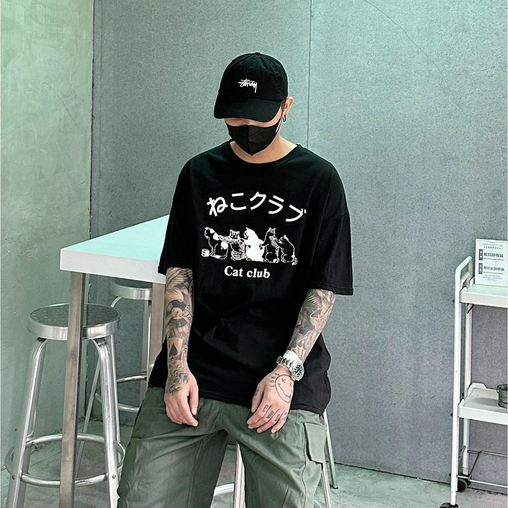【K-2】CAT CLUB 日系貓咪 聚樂部 可愛 貓 日文 古著 短袖 上衣 短T 貓貓 情侶 KR【K8929】